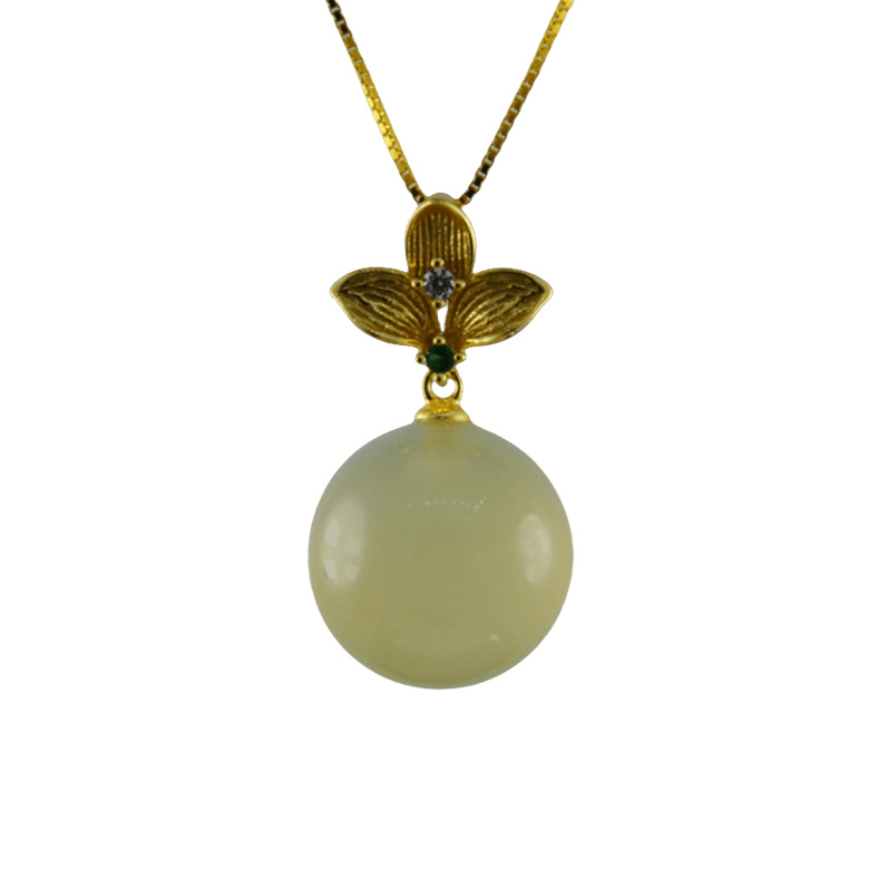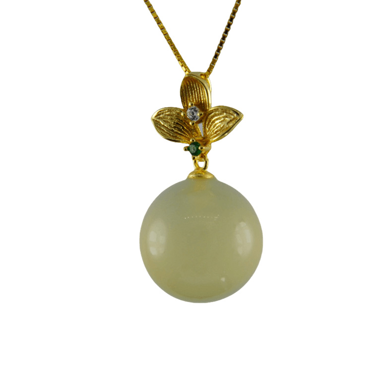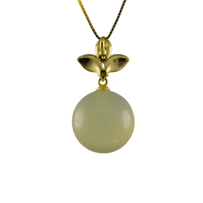 2. 金色三叶草形吊扣下连接大珠子,立体叶心上镶嵌颗小水钻,立体感强。