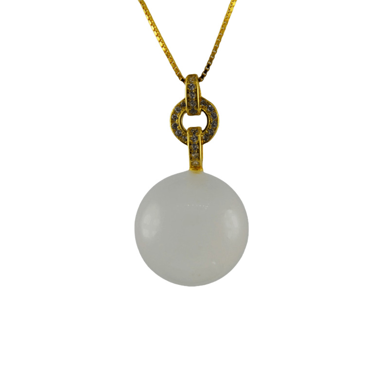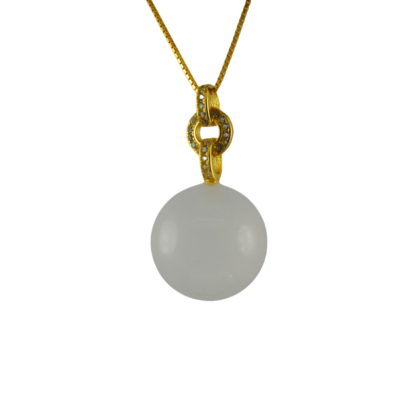 2. 金色三连环形吊扣下连接大珠子,环面上镶嵌满小水钻,给人轻奢明亮的感觉。