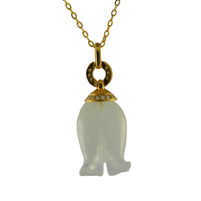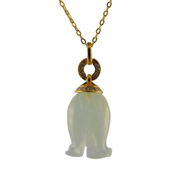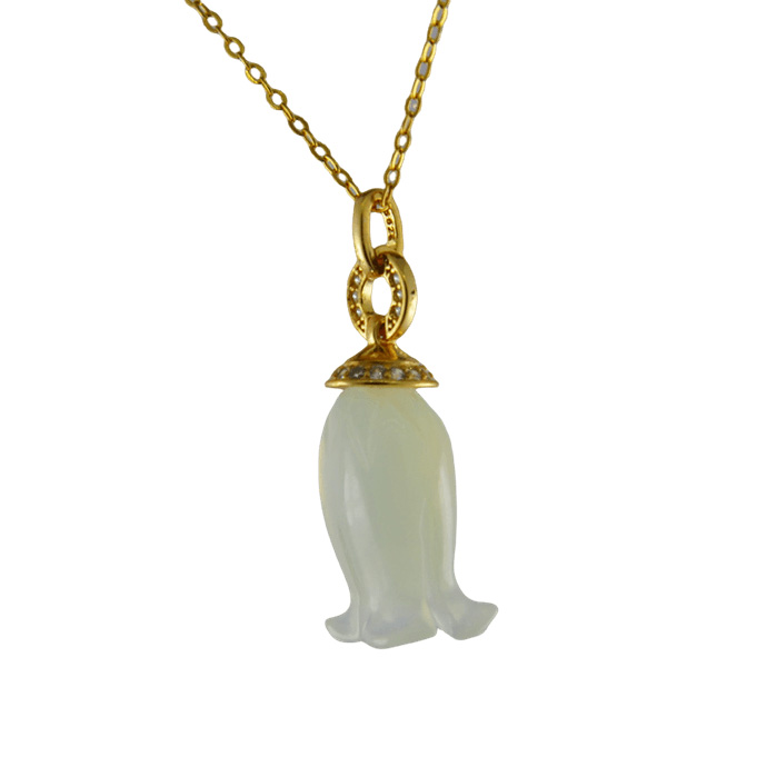 材质:吊坠托为925银;铃兰花为天然的高冰玉料,手工立体雕刻。