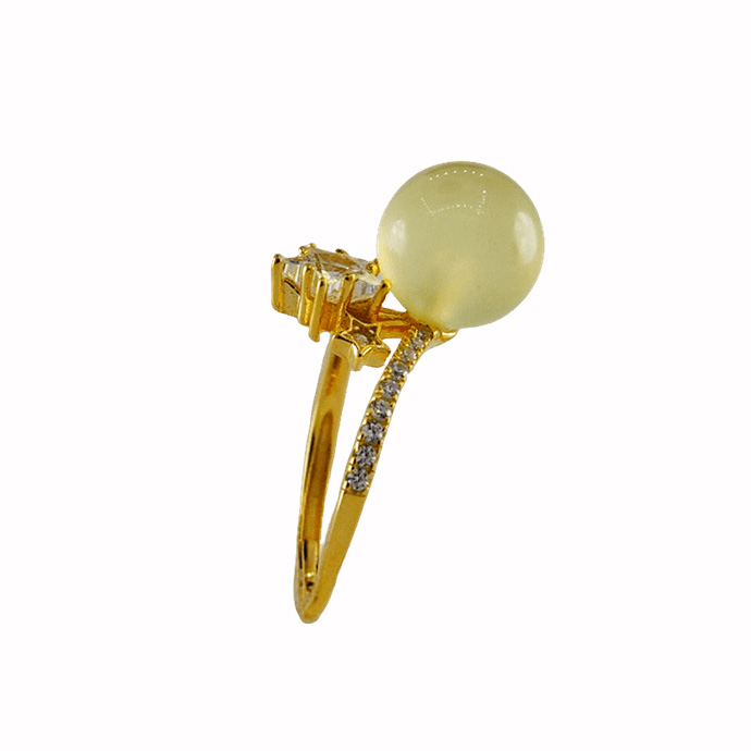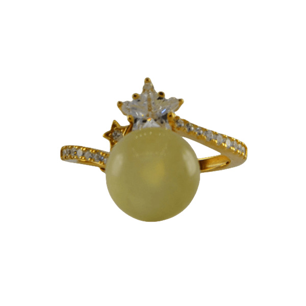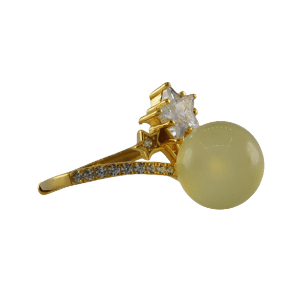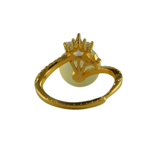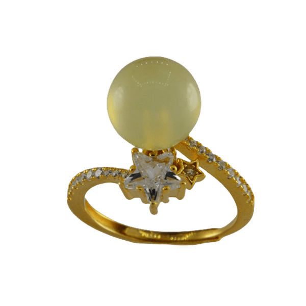 2. 戒指圈的珠子旁边有一个五角星形大水钻锆石,给人轻奢闪耀的感觉。