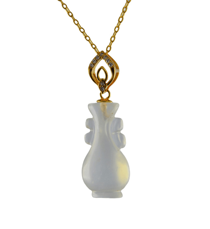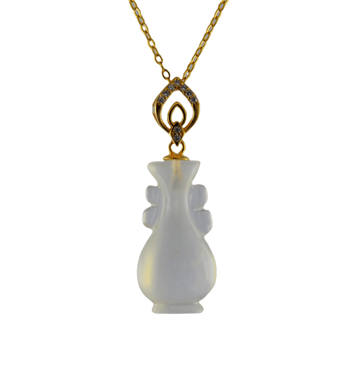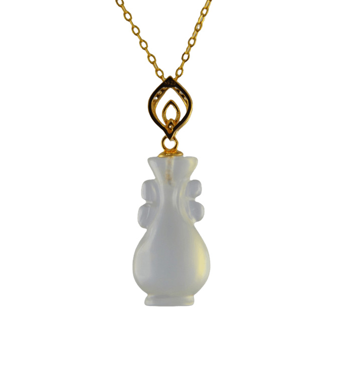 2. 金色双水滴形吊环上连接如意瓶,吊环采用古法雕刻手法,给人简洁清爽的感觉。