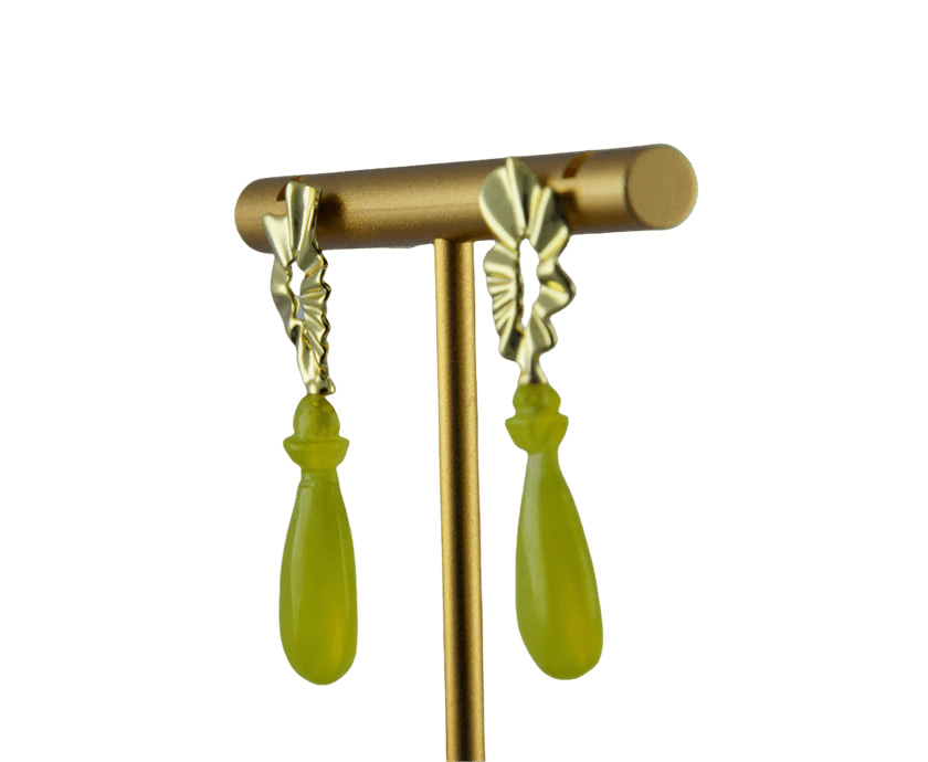 耳钉主体由925纯银打造出一枚不规则圆形环扣,在其表面雕琢出无数坑洼不平的微小凹陷。银环之下,天然平安瓶温润垂落。匠人精选玉料,顺应其天然纹路与色泽,手工雕琢出平安瓶优雅的曲线。玉质的温润光泽与银环的粗粝质感形成诗意对比——一个是被自然温柔包裹的珍宝,一个是经历风霜依然坚韧的见证。