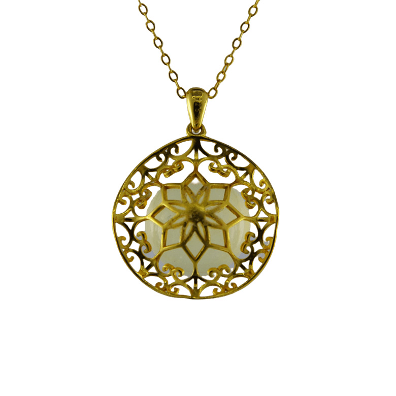 2. 金色帽形复杂花边底托与大珠子搭配,给人简约不简单的感觉。