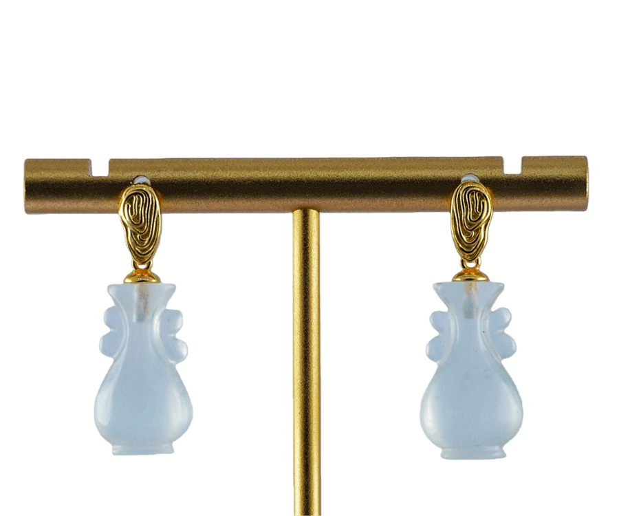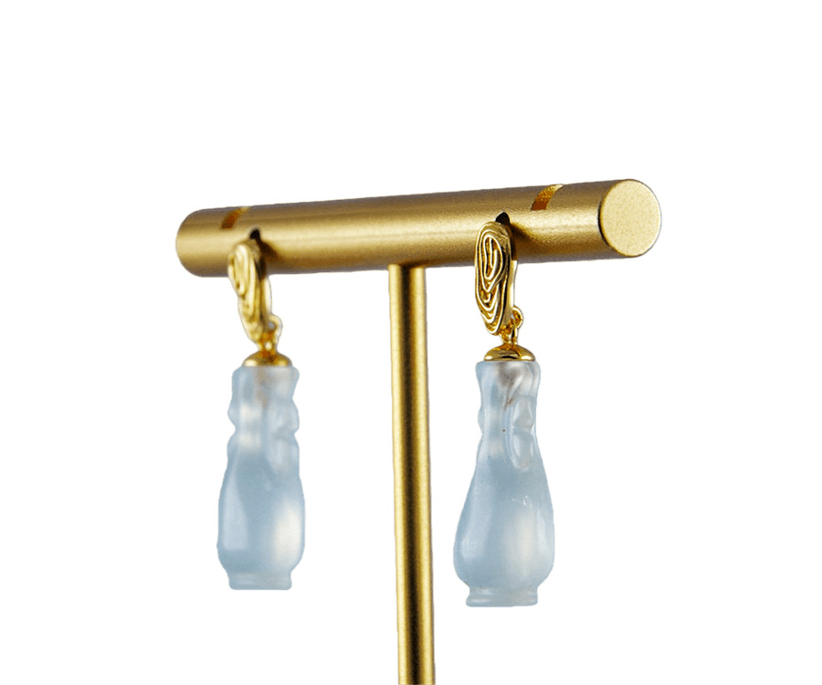 耳钉选用S925亲肤银材,匠人纯手工纂刻出立体的指纹造型。每一处凹凸与纹路转折皆精心雕琢,将指纹的私密性与唯一性凝固于金属之上,既是对个性的彰显,亦是对特定情感记忆的永恒封存。下方坠饰选用天然玉石,经由手工精雕成如意瓶形态。瓶身弧度饱满,瓶口细节精致,既保留了玉石天然灵韵,又赋予其“平安如意”的传统祝福。佩戴这对耳钉,是将生命中最独特的印记与最美好的祈愿随身携带。它提醒着你:你是独一无二的存在,值得世间万般如意。
