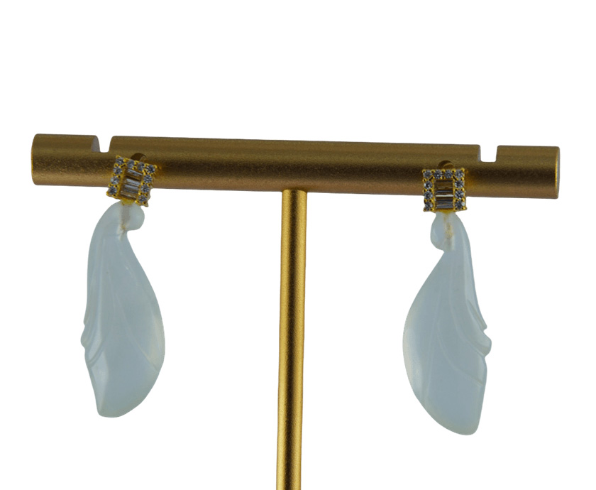 这款耳钉以925银为骨,精工打造出简约现代的正方形轮廓,密镶璀璨水钻锆石紧密排列,光芒灵动而夺目。正方形的底端坠着一枚天然玉石手工雕刻的玉兰花。手工雕刻的痕迹保留了玉石最动人的天然韵味。正方形水钻的闪耀,是面向世界的璀璨宣言;而静逸垂落的玉兰花,则是回归内心的平安寄托。