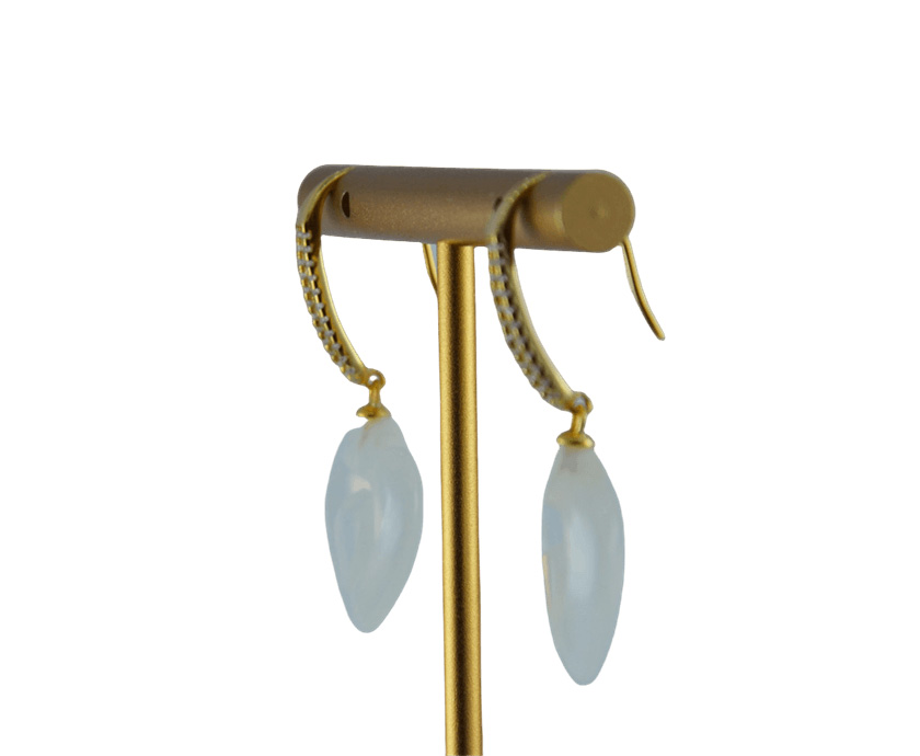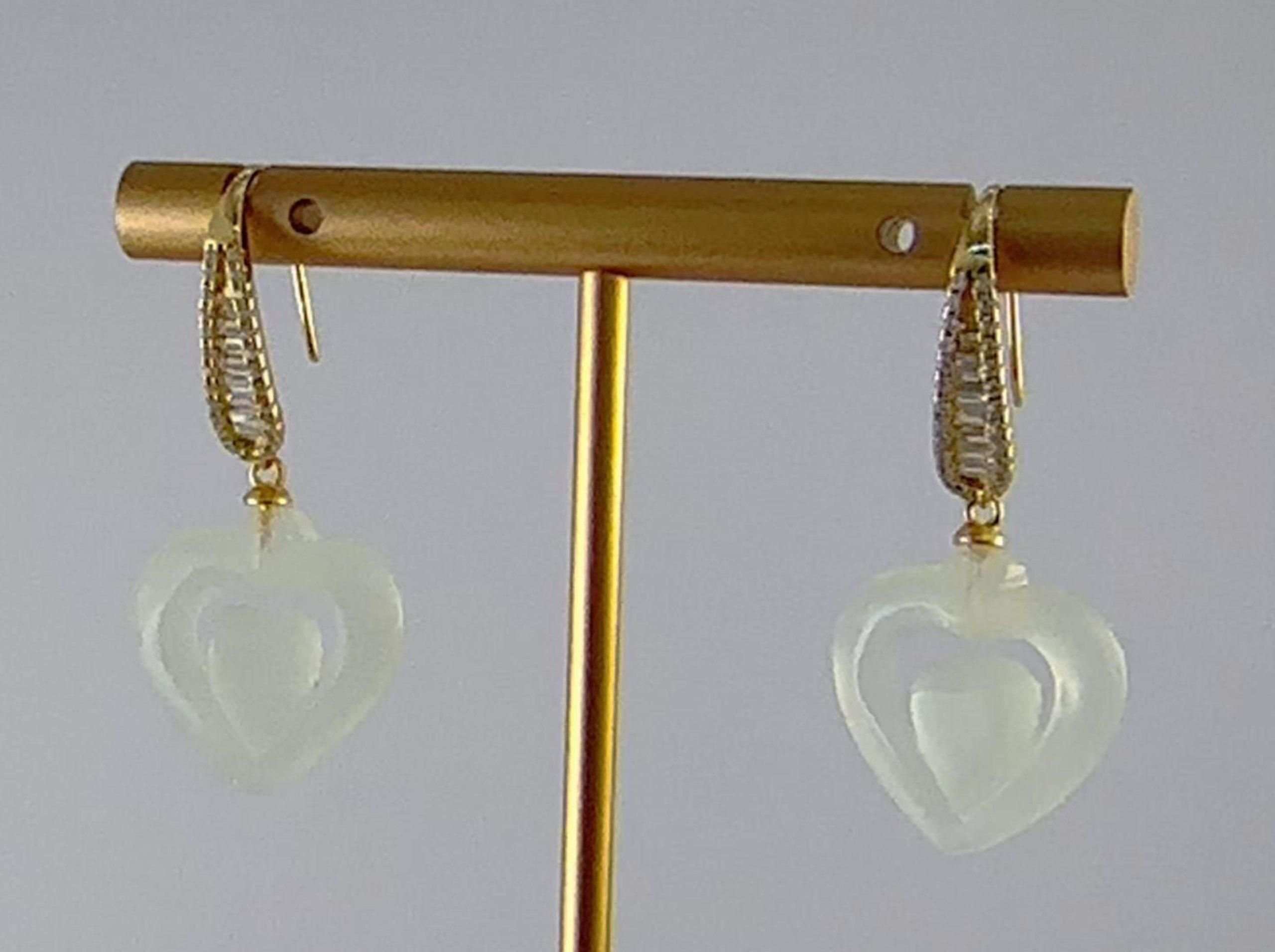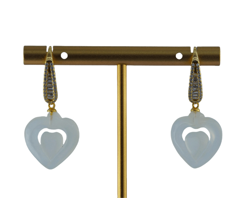 耳钩的主体是以925银勾勒出如水滴般流畅饱满的形态,再将甄选水钻锆石紧密镶嵌其表面,形成充满现代感与力量感的水滴钻石;下面是温润内敛,承载传统文化与手作温度的玉石桃心。一明一暗,一动一静,一西方宝石之光华,一东方美玉之气韵,二者碰撞却奇妙交融,创造出一种既时尚夺目又底蕴深厚的独特美学。