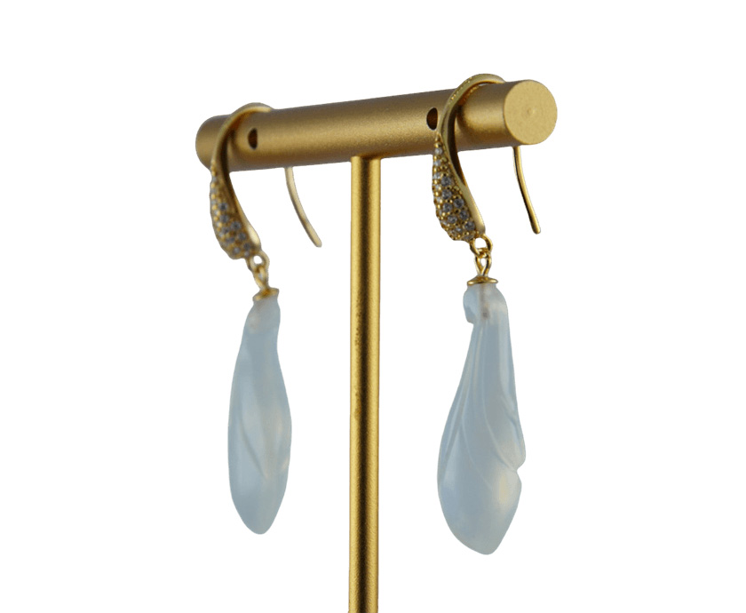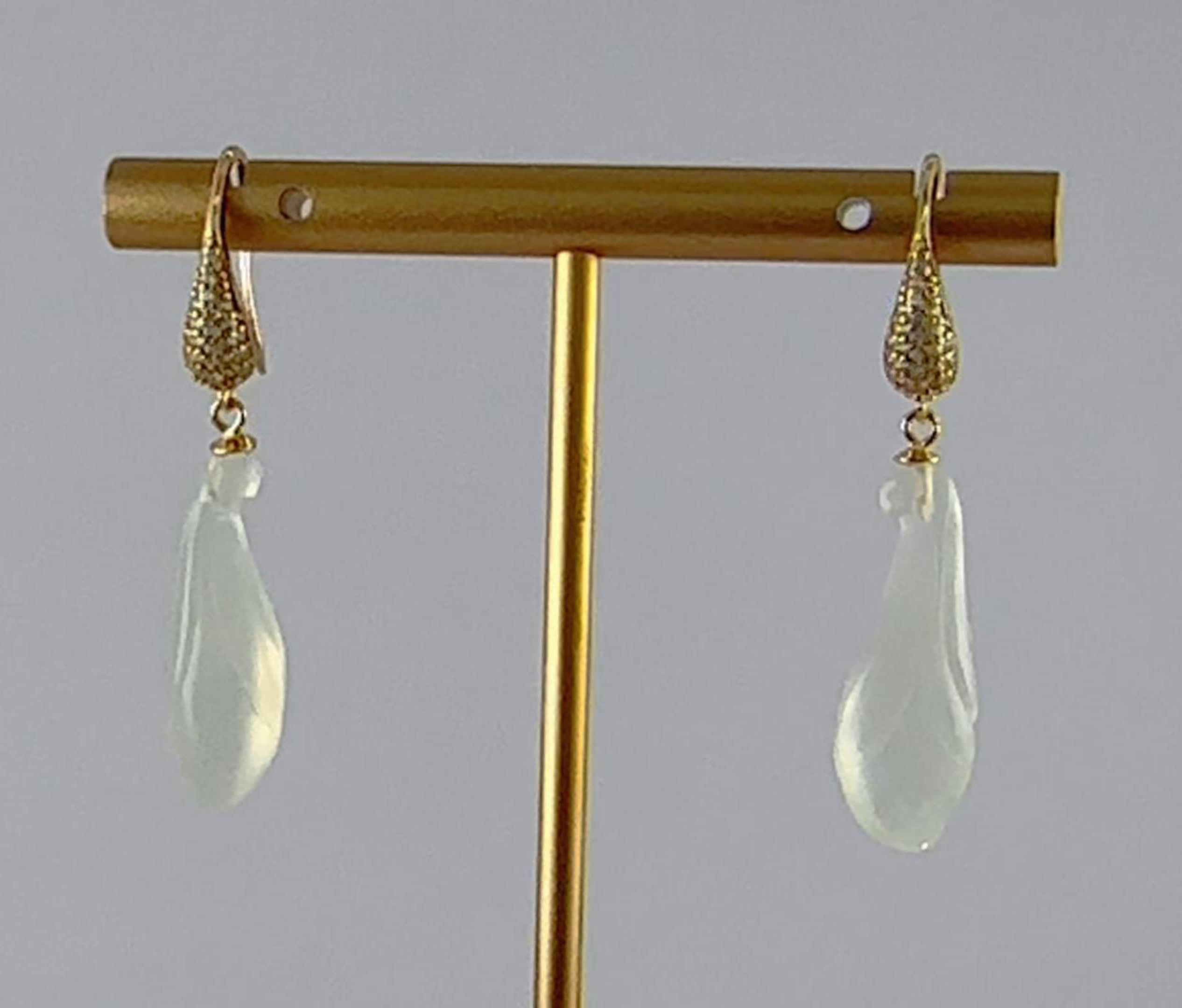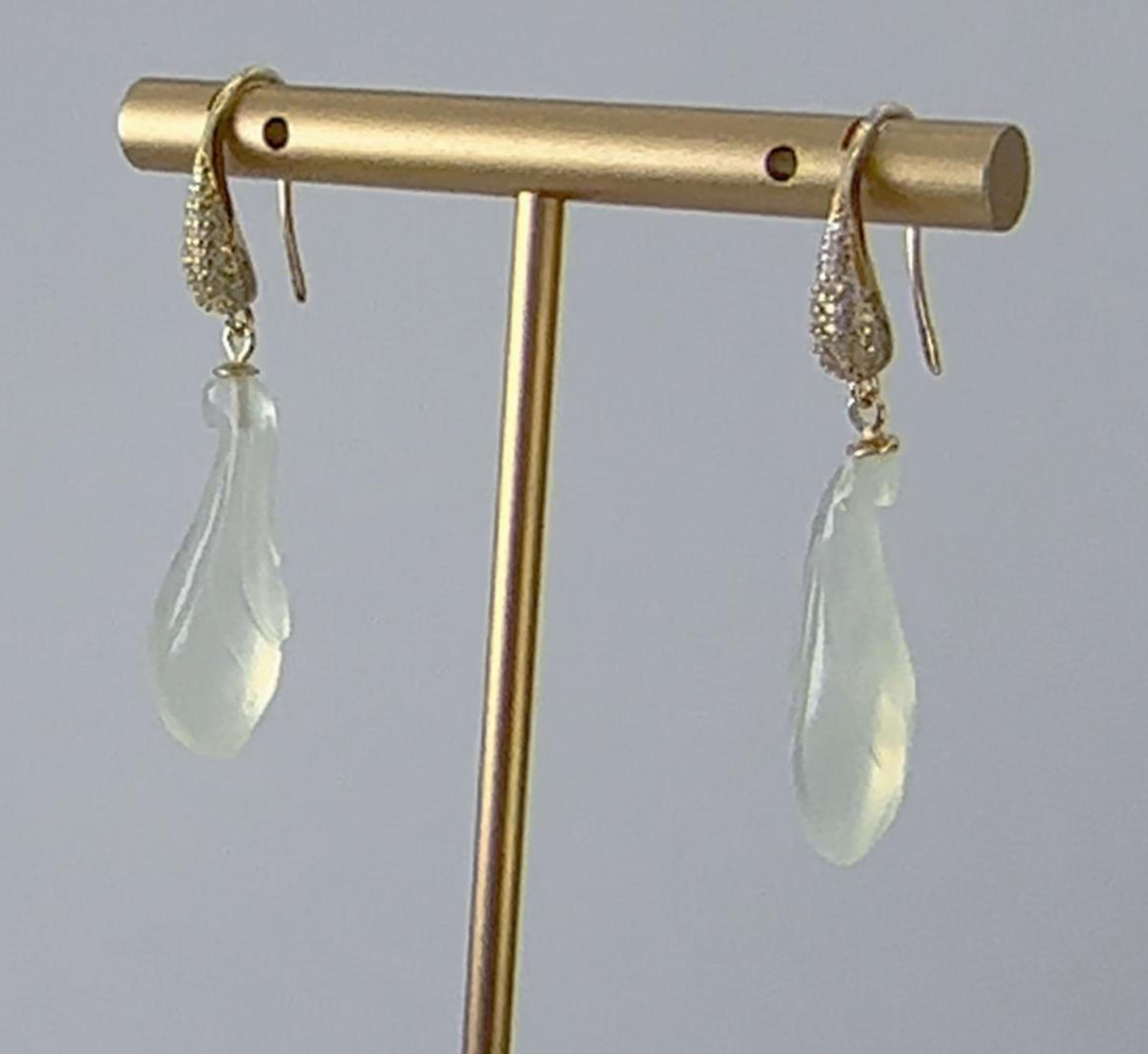 耳钩的主体是以925银勾勒出如水滴般流畅饱满的形态,再将甄选水钻锆石紧密镶嵌其表面,形成充满现代感与力量感的水滴钻石;下面是温润内敛,承载传统文化与手作温度的玉石玉兰花。一明一暗,一动一静,一西方宝石之光华,一东方美玉之气韵,二者碰撞却奇妙交融,创造出一种既时尚夺目又底蕴深厚的独特美学。