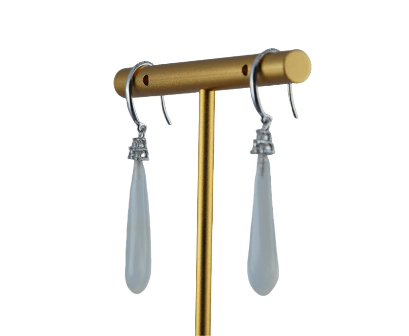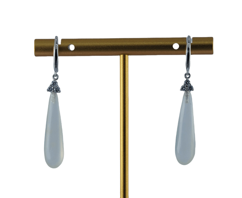 这款耳钩采用高品质925银为基底,质地纯净,亲肤不易过敏。匠心镶三颗璀璨水钻与高亮锆石,瞬间点亮面部轮廓。耳钩的灵魂系于下面那枚天然玉石雕刻的细长水滴。我们坚持使用天然玉料,并由匠人全手工雕刻成型,最大化保留玉石本身的天然纹理与柔和气韵,是任何人工材料无法比拟的生命力与珍贵感。伴随你,在纷繁世界中摇曳出一片属于自己的静逸天地。