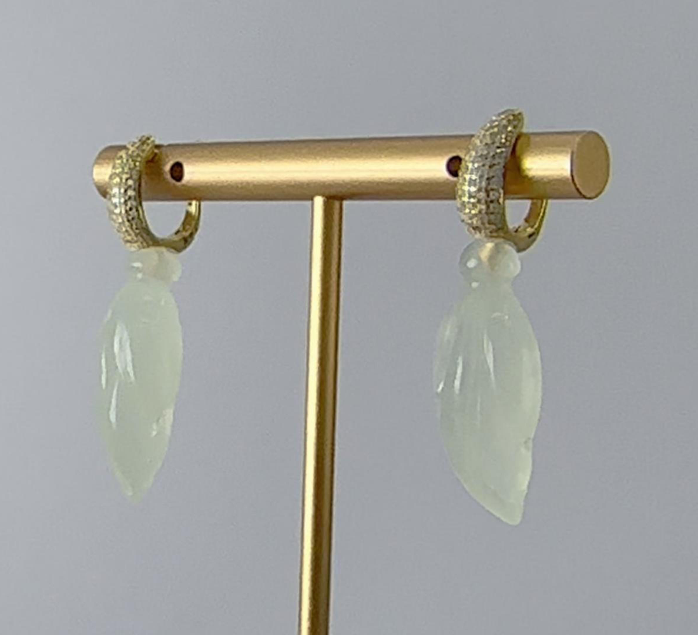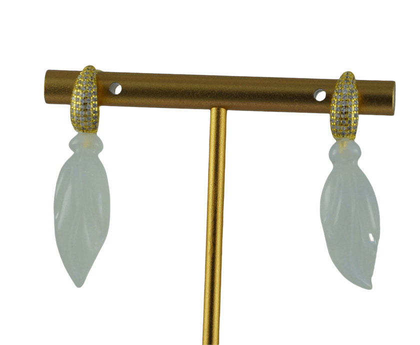 耳环采用高品质925银为基底,塑造成利落而优雅的锥形几何形,并在锥形表面进行了高难度满镶处理,密布精选的优质水钻锆石。锥形底部固定衔接一枚天然玉石手工雕刻的大玉兰花。我们精选天然玉料,由经验匠人全手工雕琢成形。手工雕刻赋予了每块玉石独特性,使其纹路与弧度都蕴藏着机械无法复制的温度与灵性。璀璨水钻诠释着现代女性耀眼自信的一面,而天然大玉兰花则承载着对安宁顺遂的永恒向往。