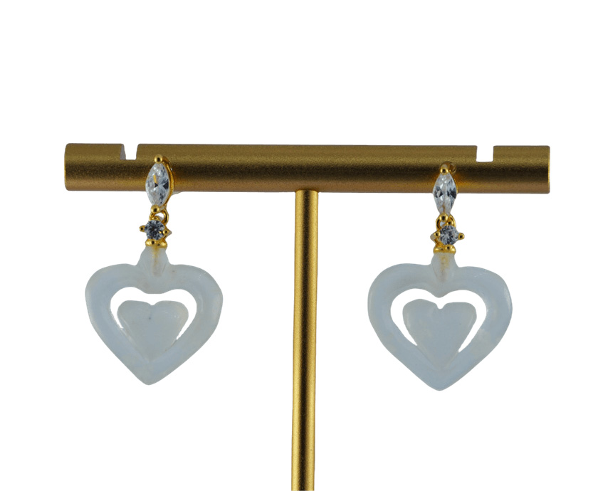 1. 耳钩采用925纯银打造,亲肤不过敏。顶部和连接处各镶嵌一颗高品质大水钻锆石,切割面丰富。下方的桃心挂坠为天然玉石,全程由经验丰富的匠人手工雕琢。每一刀的深浅、每一处的弧度都凝聚着匠人的心血,展现了极高的雕刻技艺 。耳钩整体长度设计恰到好处,既能在发丝间若隐若现地展现玉石的温润与雕刻细节,又不会过于夸张。