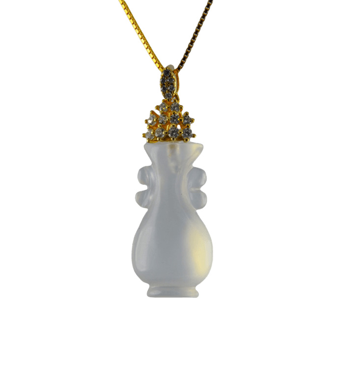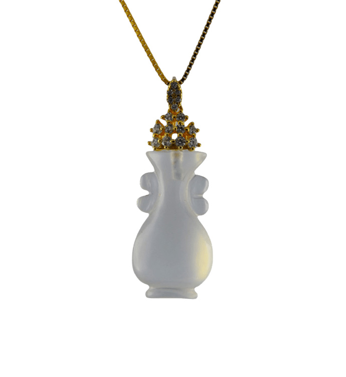 2. 金色皇冠形吊环上连接如意瓶,吊环上镶嵌小水钻,给人立体奢侈的感觉。