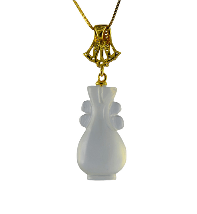 2. 金色皇冠形吊环上连接如意瓶,吊环上镶嵌小水钻,给人立体奢侈的感觉。
