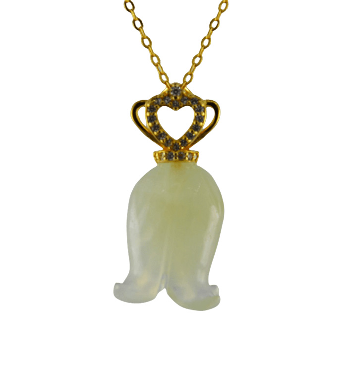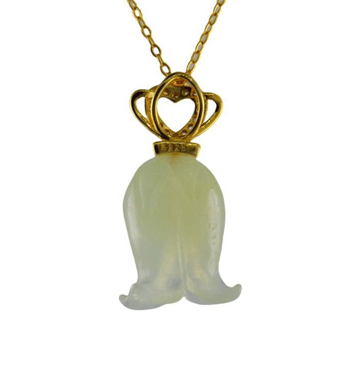材质:吊坠托为925银;铃兰花为天然的高冰玉料,手工立体雕刻。