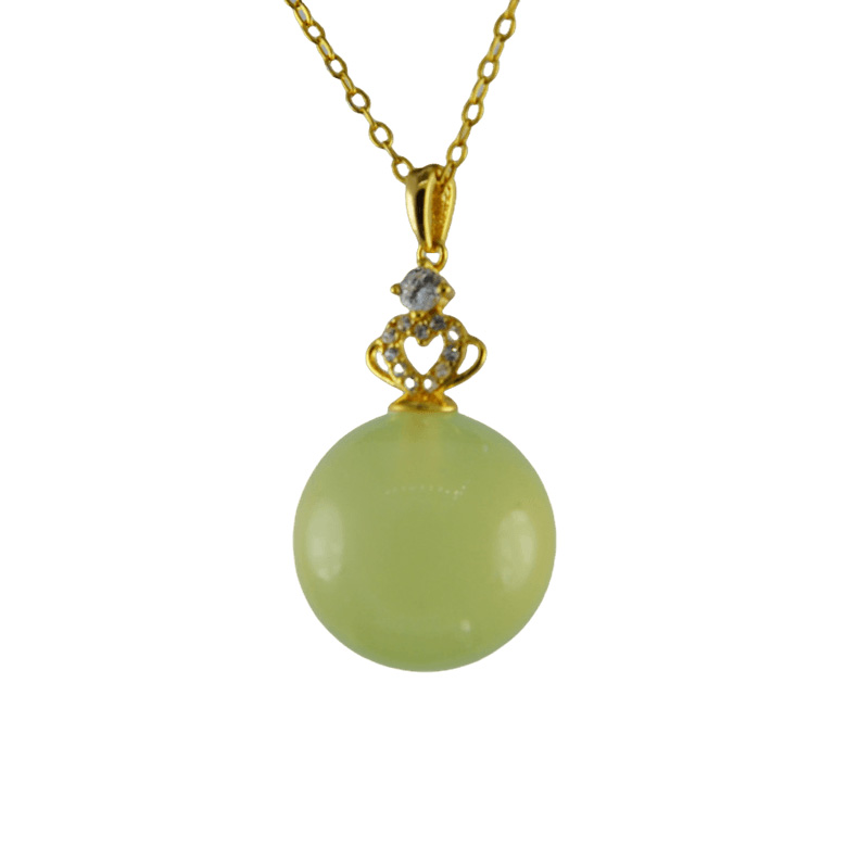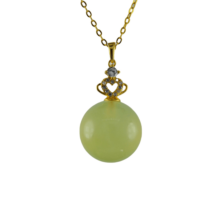 2. 金色皇冠形吊扣下连接大珠子,吊扣上镶嵌小水钻,整体精致明亮。