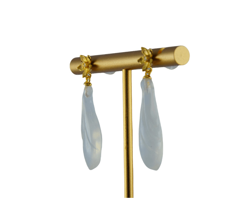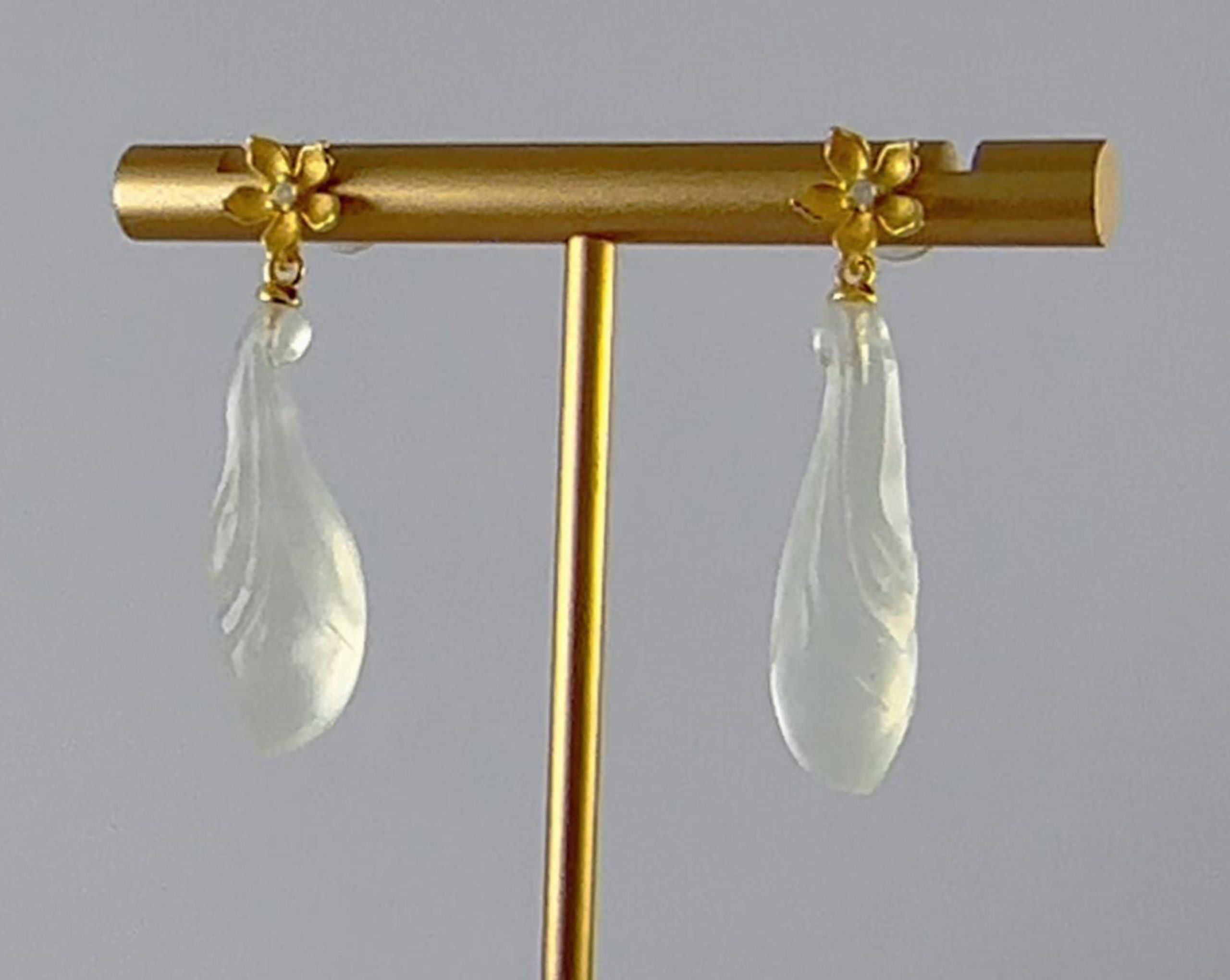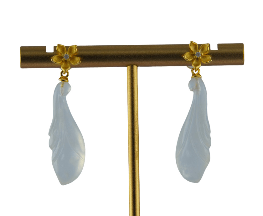 1. 耳钉用925银纂刻立体的花瓣。每一片都饱满舒展,花瓣的弧度经过精密计算,保持着盛放的姿态。在花心深处,镶嵌着一颗璀璨的小水钻锆石,折射出细碎的光芒。下面连接的是天然玉石手工雕刻的玉兰花。天然的纹理温润如水。花瓣的线条流畅优雅,花苞饱满含蓄。上端是写实的立体银花,下端是写意的玉石玉兰,一实一虚,一刚一柔,形成绝妙的视觉平衡。花心的水钻成为连接二者的光点,让整件作品充满层次感和故事性。