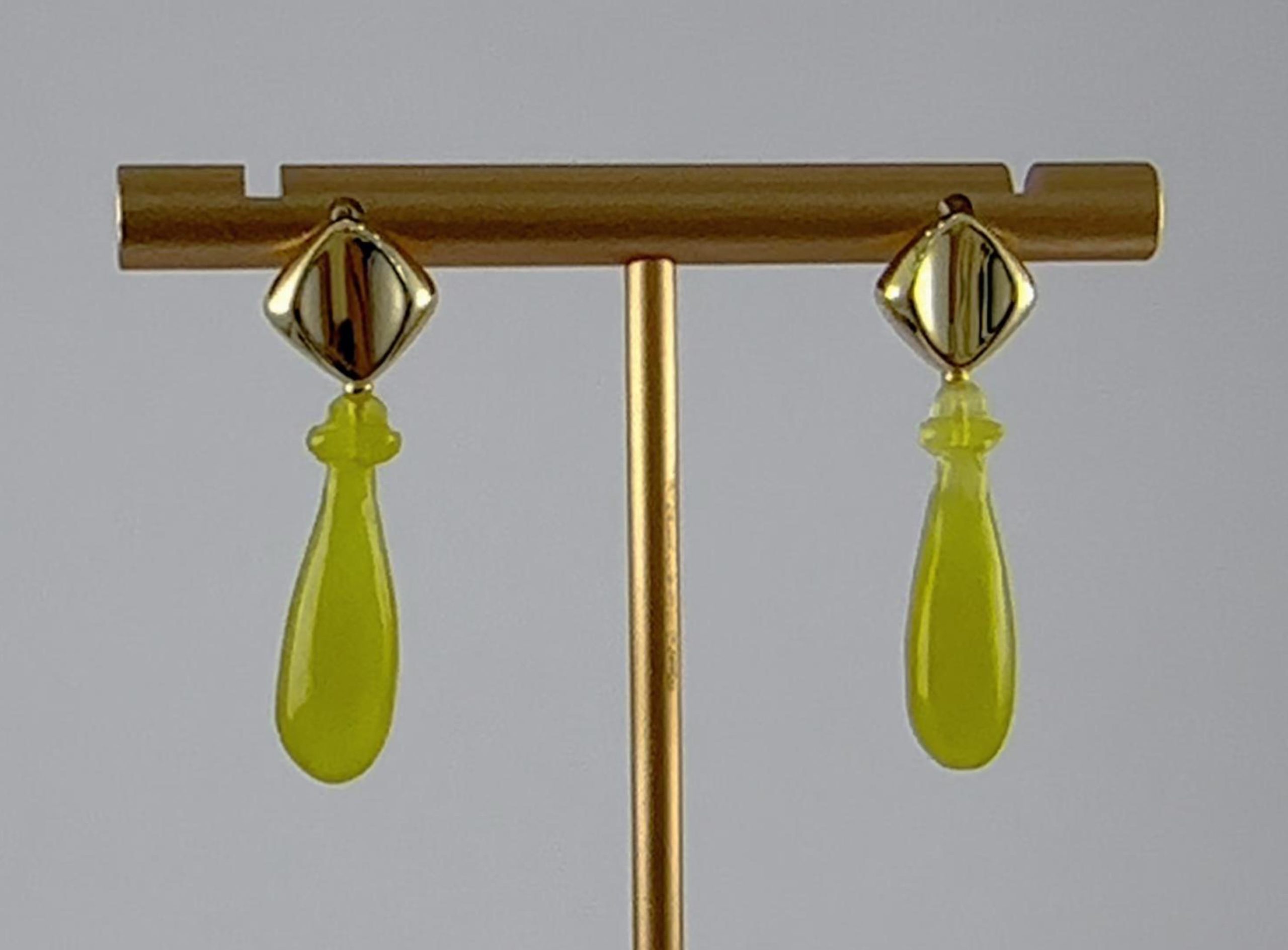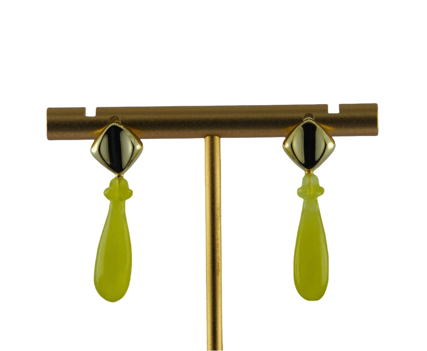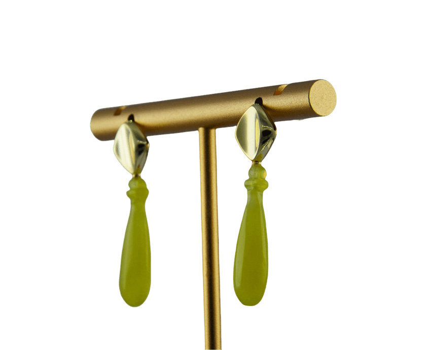 这款耳钉以925银为骨,精工打造出独特的带弧面的菱形结构,当光线滑过,弧面内便荡漾起一道深邃的幽影。垂坠是一颗由天然玉石手工雕刻而成的平安瓶。匠人随玉石的天然肌理与色泽,琢磨出圆融饱满,触感温凉的造型。寓意纯净,丰盈与宁静。