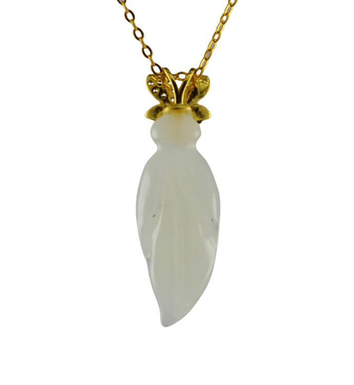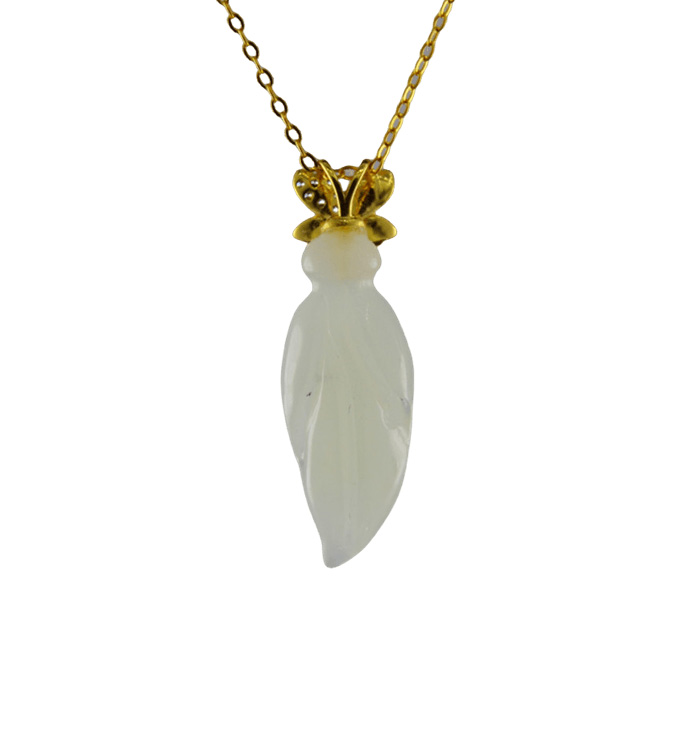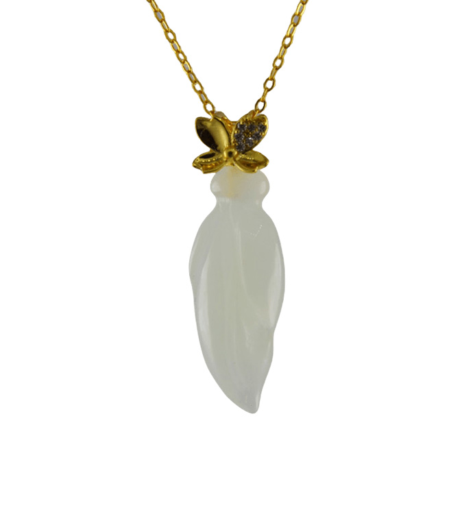 2. 金色蝴蝶形吊环上连接大玉兰花,吊环采用古法雕刻手法,给人简洁清爽的感觉。