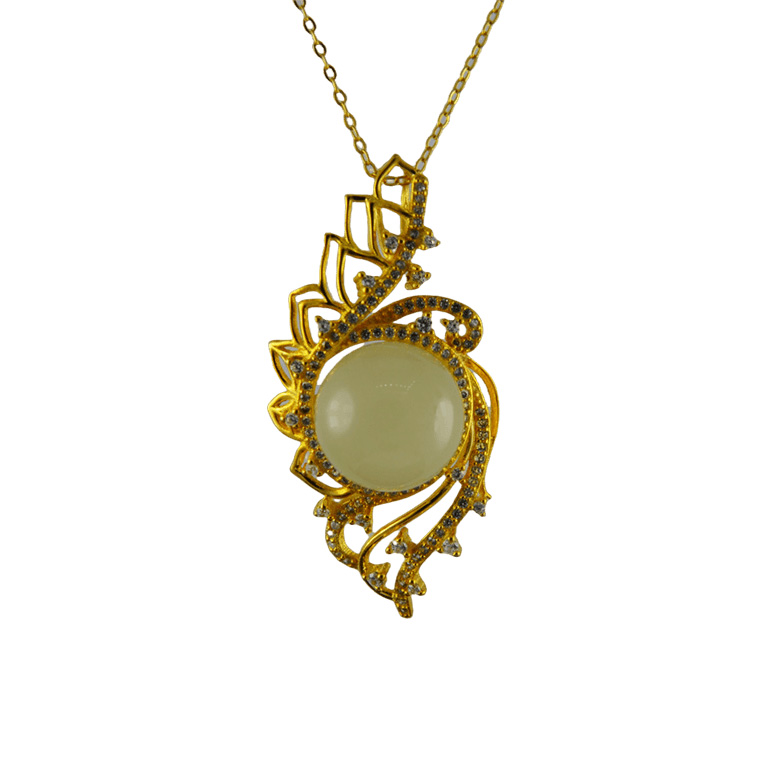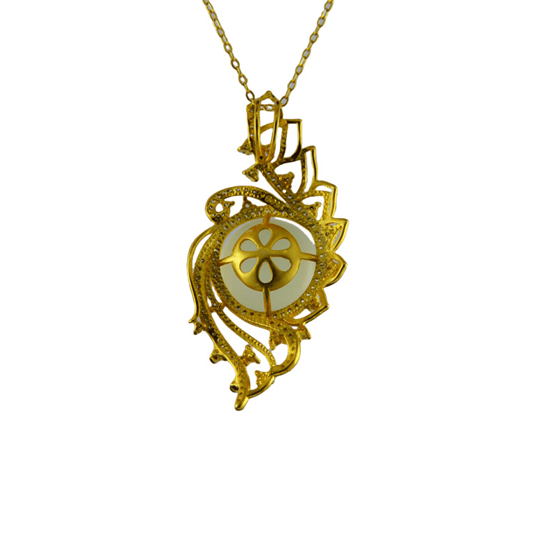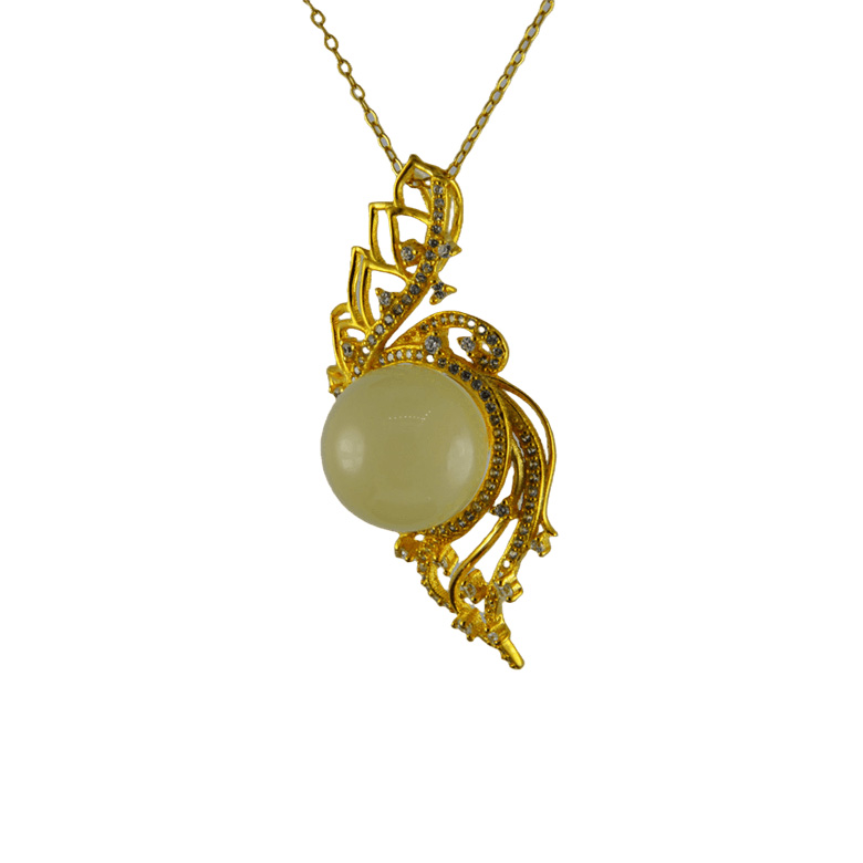 材质:吊坠托为925银;大珠子为天然的白冰玉料。
