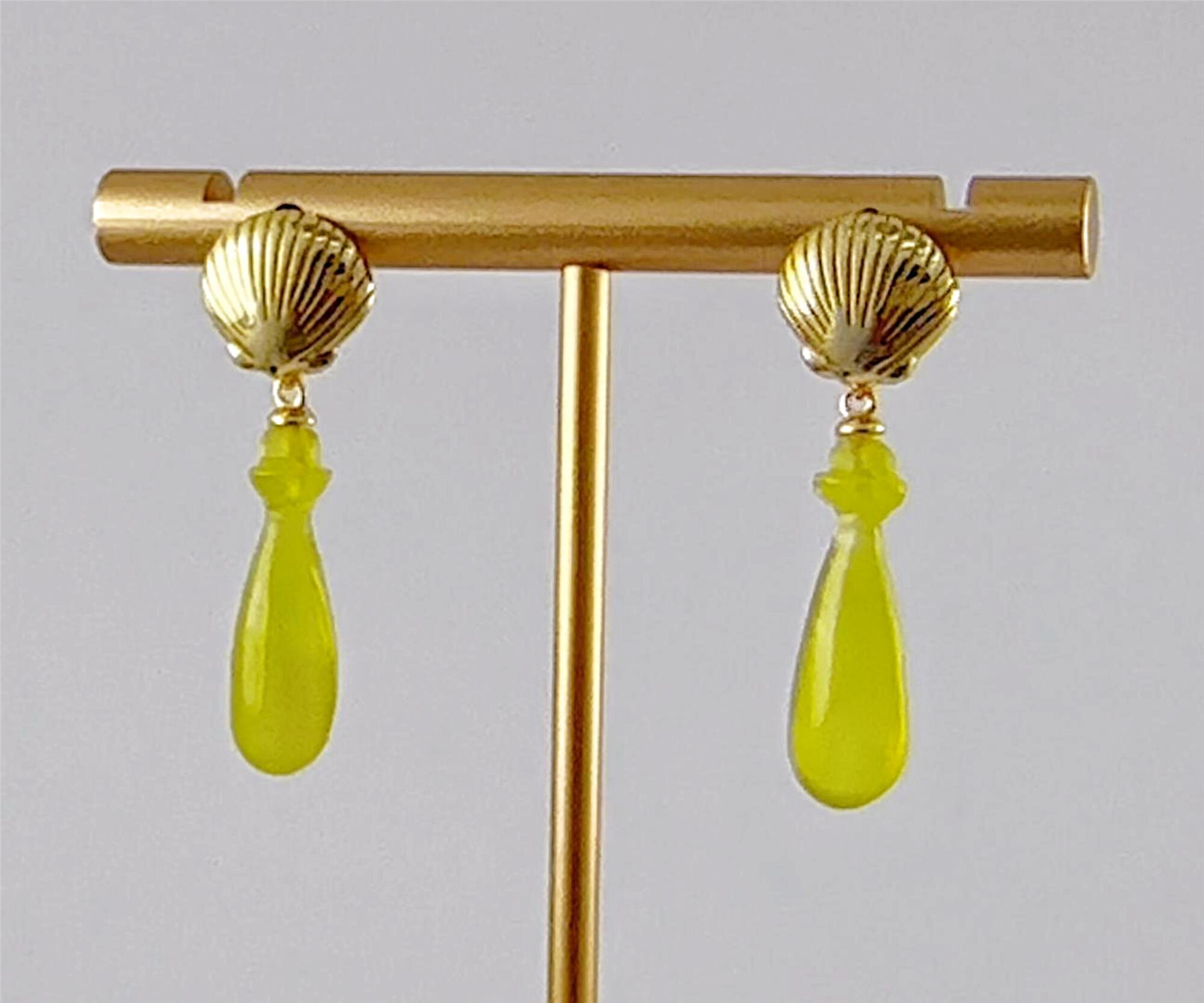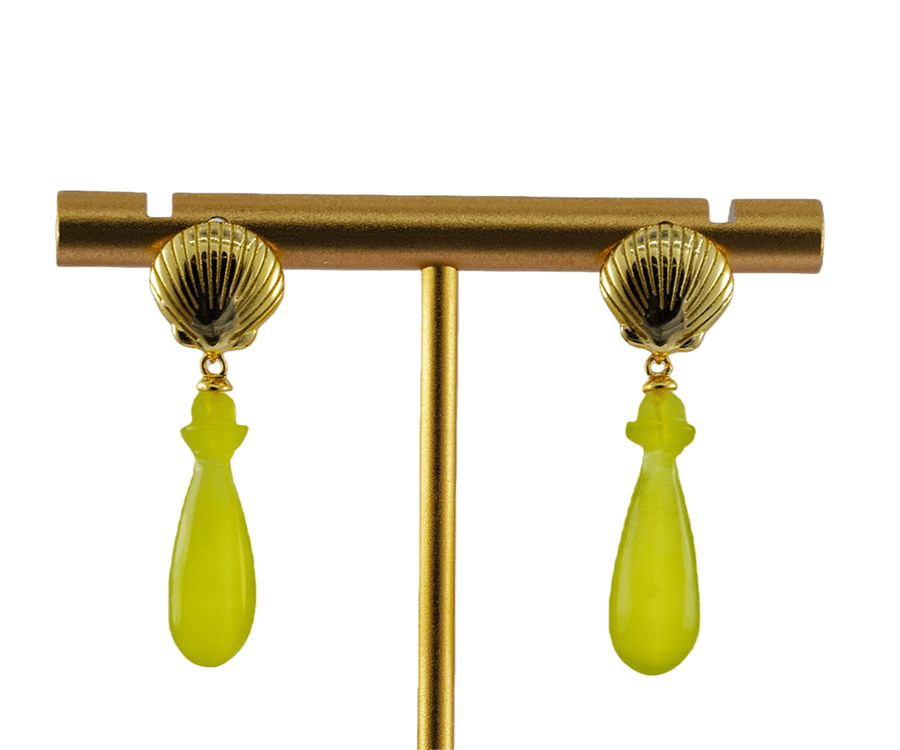 对耳环,上部采用925银精心锻造,匠人以细腻的刻刀,在银质表面纂刻出贝壳天然的细密纹理——一道道深浅有致的纹路,真实而生动。银贝之下,连接着另一枚由天然玉石手工雕刻而成的平安瓶。玉的温润被匠人巧手雕琢成玲珑的瓶形,与上方的银贝遥相呼应。当银的冷冽遇见玉的温润,当雕刻的纹理遇见天然的质感,便成了这对耳环最动人的语言。佩戴于耳际,随着步履轻轻摇曳,仿佛能听见远方的潮汐,一声一声,都是心动的回响。