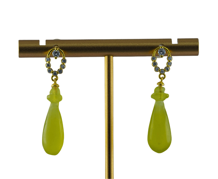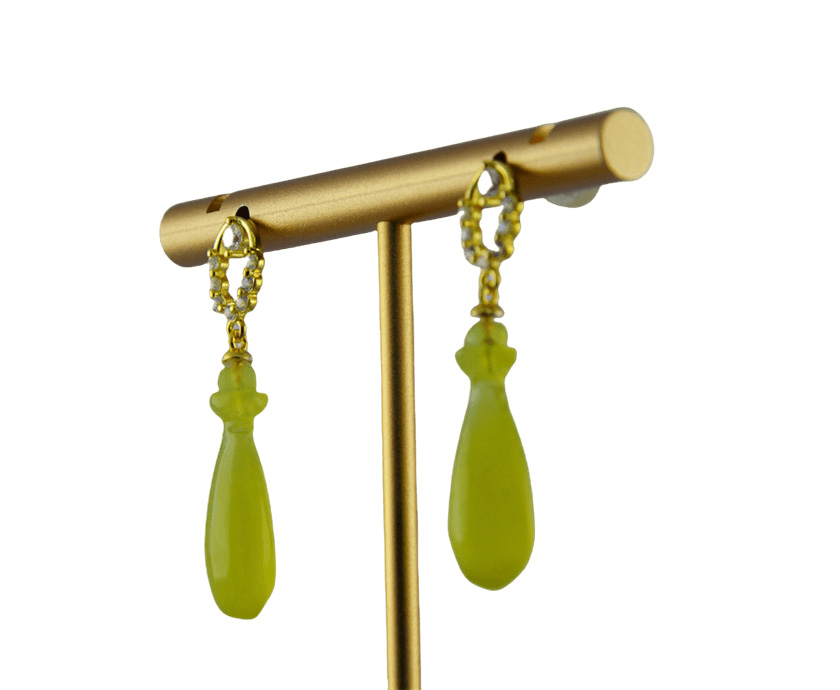 主体以925银丝,弯绕成一道圆圈。银圈之上,精心镶嵌着一排璀璨夺目的细小水钻。银圈之下,悬垂一滴天然玉石手工雕刻而成的平安瓶。玉石温润的质感与淡雅色泽,与上方银钻的清冷璀璨形成温柔对比。每一枚平安瓶都独一无二,蕴含天然纹理,造型圆润饱满,线条流畅,象征着纯净、柔韧与永恒不息的生命力。它随着步履轻盈摇曳,动静之间,尽显东方婉约与现代简约的融合之美。