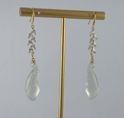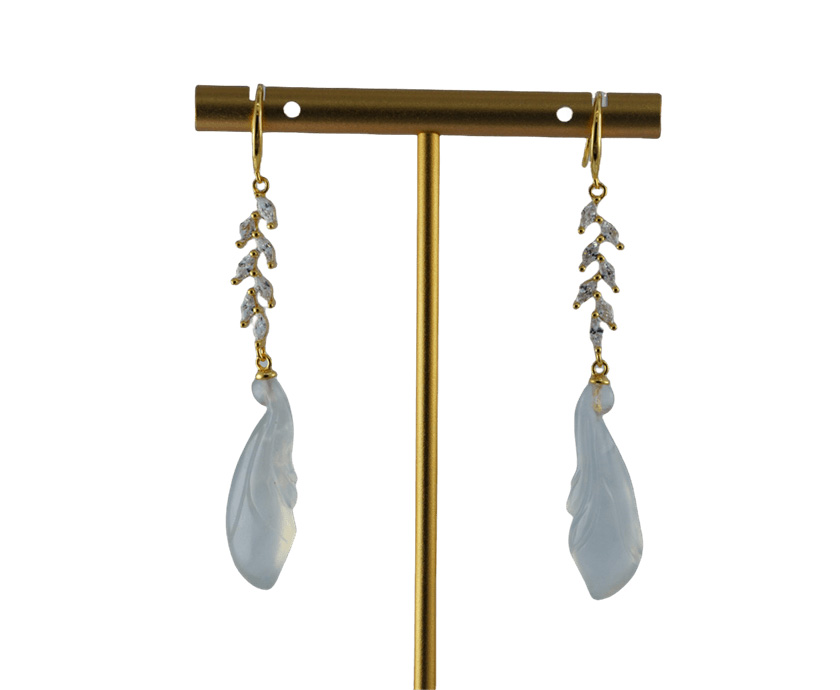 耳钩用925银塑出穗秆的流畅线条,麦粒的饱满形态用精心镶嵌的大粒水钻锆石,沿着麦穗自然生长错落排布。光芒四射的麦穗下是一枚天然玉石手工雕刻的玉兰花静静悬垂。匠人依玉石的天然肌理与色泽,精雕出玉兰花瓣的层叠之姿与舒展之态。祝愿佩戴者拥有如钻石麦穗般耀眼夺目的成就与光彩,同时亦守护着她如玉石兰花般清雅高洁的内心世界与独立风骨。是献给那些在现实世界中努力耕耘,却从未忘却精神家园的卓越女性的赞美诗。