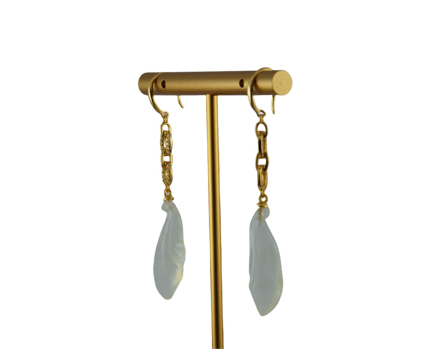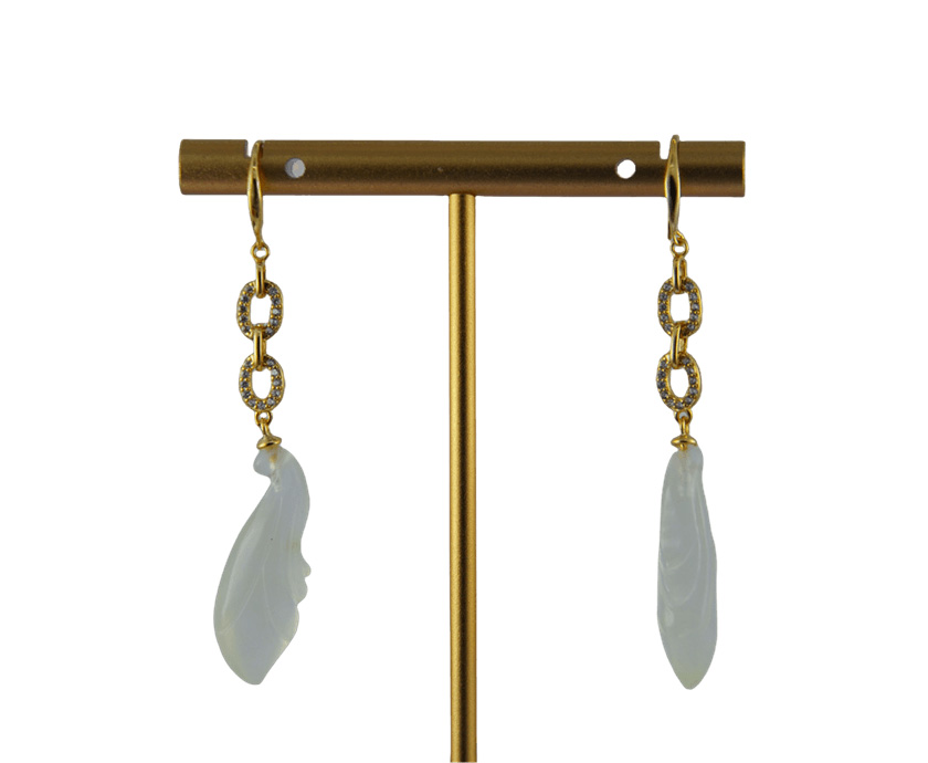 这款耳钩采用高品质925银为基底,质地纯净,亲肤不易过敏。三枚环环相扣的银环,环身上被璀璨水钻锆石紧密铺镶,构成三道流光溢彩的圆环。圆环下垂落一枚天然玉石雕琢而成的玉兰花。每颗玉石都承载着大自然的独一无二。全手工雕刻的匠心,赋予玉石以柔美的弧线和生命的动感,它在步履摇曳间轻盈摆动,犹如一颗将滴未滴的晨露,清雅脱俗。