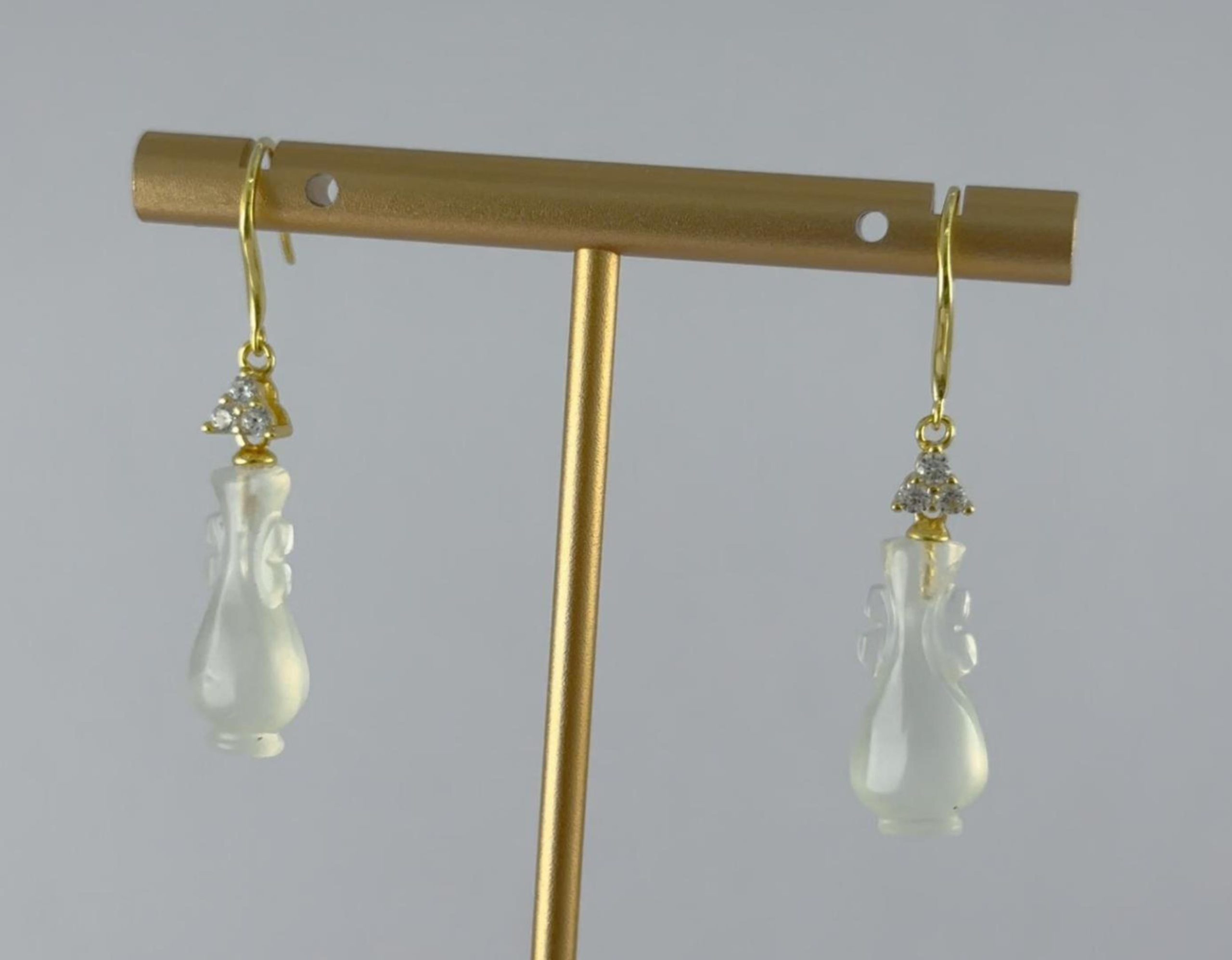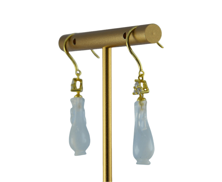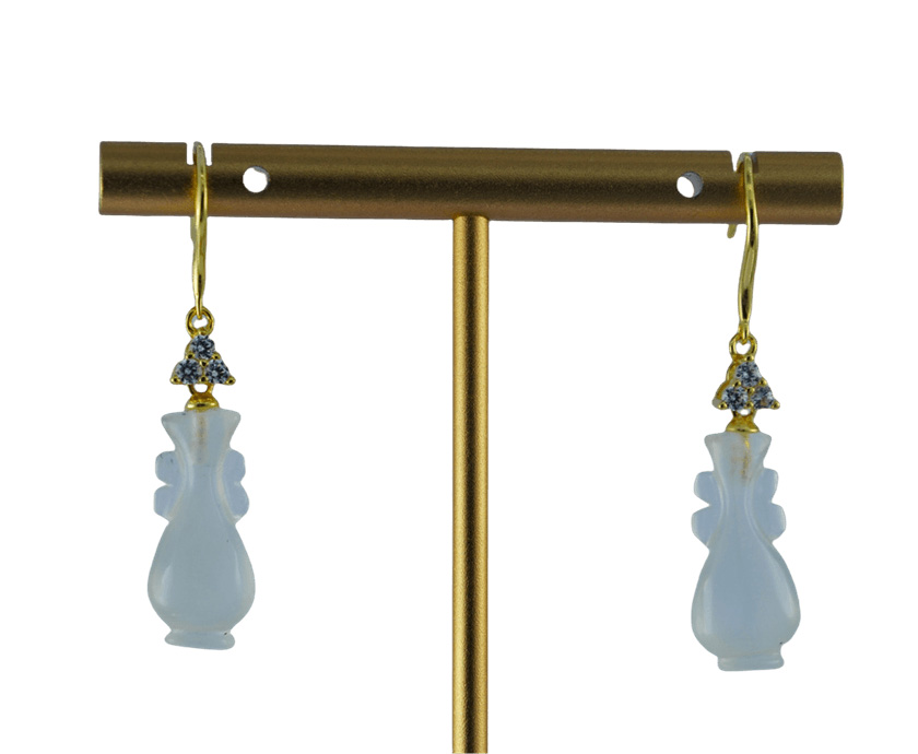 这款耳钩采用高品质925银为基底,质地纯净,亲肤不易过敏。匠心镶三颗璀璨水钻与高亮锆石,瞬间点亮面部轮廓。耳钩的灵魂系于下面那枚天然玉石雕刻的如意瓶。我们坚持使用天然玉料,并由匠人全手工雕刻成型,最大化保留玉石本身的天然纹理与柔和气韵,是任何人工材料无法比拟的生命力与珍贵感。伴随你,在纷繁世界中摇曳出一片属于自己的静逸天地。