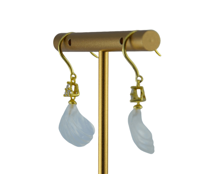 这款耳钩采用高品质925银为基底,质地纯净,亲肤不易过敏。匠心镶三颗璀璨水钻与高亮锆石,瞬间点亮面部轮廓。耳钩的灵魂系于下面那枚天然玉石雕刻的贝壳。我们坚持使用天然玉料,并由匠人全手工雕刻成型,最大化保留玉石本身的天然纹理与柔和气韵,是任何人工材料无法比拟的生命力与珍贵感。伴随你,在纷繁世界中摇曳出一片属于自己的静逸天地。