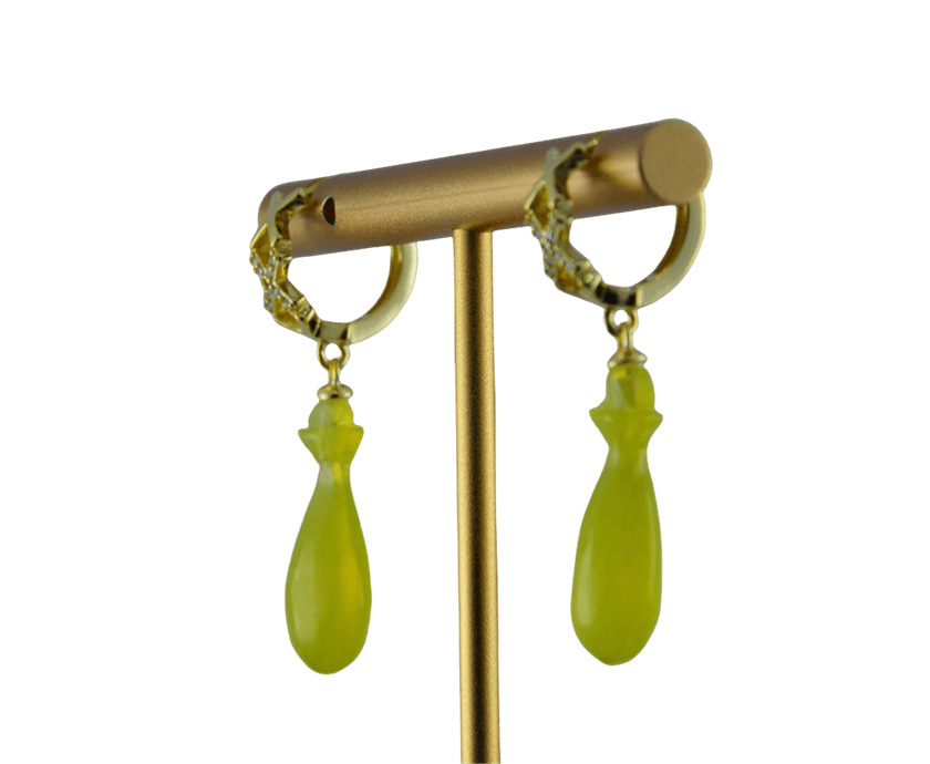 这款耳环采用高品质925银为基底,质地纯净,亲肤不易过敏。匠心密镶数颗璀璨水钻与高亮锆石在中间的X形上,营造出群星环绕的效果。耳环的灵魂系于下面那枚天然玉石雕刻的平安瓶。我们坚持使用天然玉料,并由匠人全手工雕刻成型。每一道弧线都让平安瓶的肌理栩栩如生,是任何人工材料无法比拟的生命力与珍贵感。玉石独有的莹润光泽,在璀璨钻光中平添一份温婉含蓄的东方雅韵。