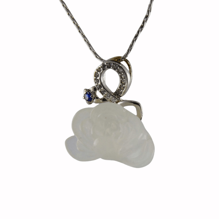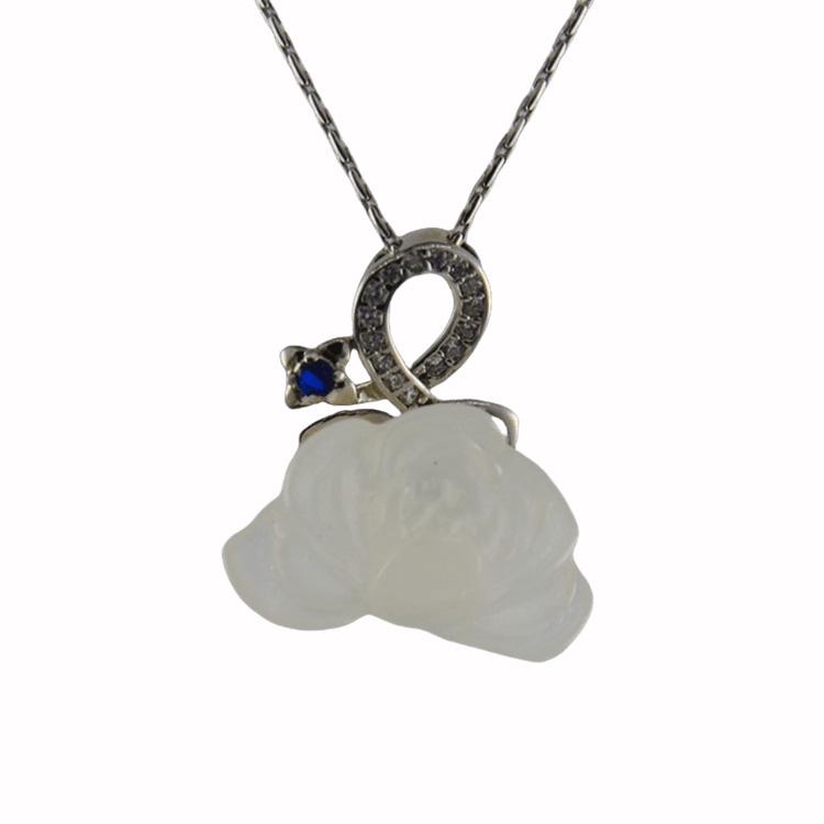 1. 吊坠用925银精心勾勒出丝带柔美流转的弧度,仿佛一阵微风拂过,丝带正轻轻扬起。丝带之上,满镶璀璨水钻,颗颗晶莹。丝带之下,是一朵由匠人全手工雕刻的天然玉石牡丹。为了呈现牡丹盛放的极致繁华,雕刻师采用五层立体雕刻技法,花瓣层层递进,由外至内,由舒至紧。五层花瓣在光影中呈现出丰富的明暗变化,让这朵玉牡丹宛若刚从枝头摘下,带着露水的莹润。丝带,系住幸运;牡丹,绽放风华。当闪耀的丝带轻轻托起盛放的牡丹,寓意着:愿你被世界温柔以待,愿你的美好如花绽放。