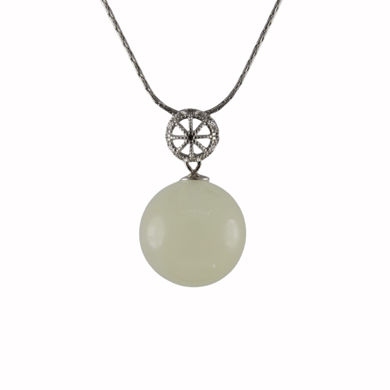 2. 银色丝帽形吊扣下连接大珠子,吊扣采用古法盘丝而成,整体精致明亮。
