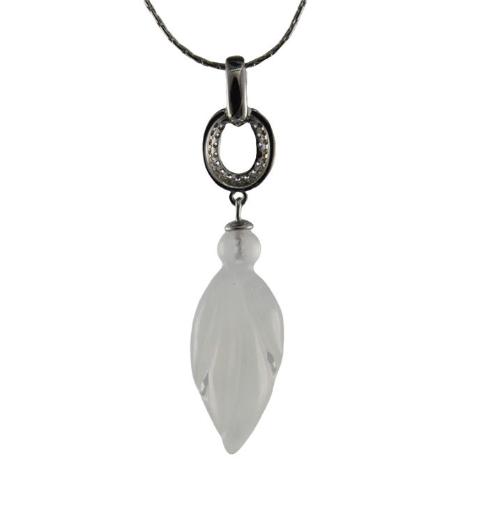 2. 银色二连圆环形吊环上连接大玉兰花,吊环上镶嵌满小水钻,给人奢侈清爽的感觉。