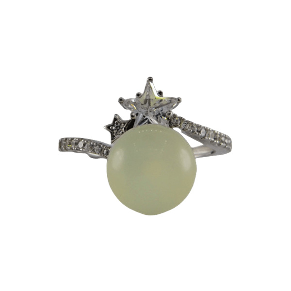 2. 戒指圈的珠子旁边有一个五角星形大水钻锆石,给人轻奢闪耀的感觉。