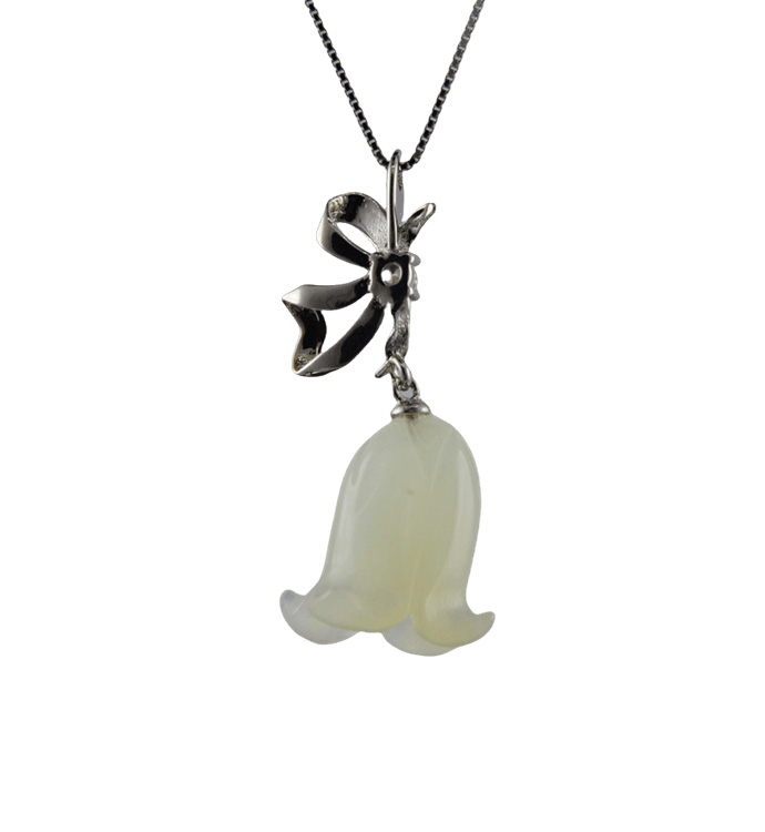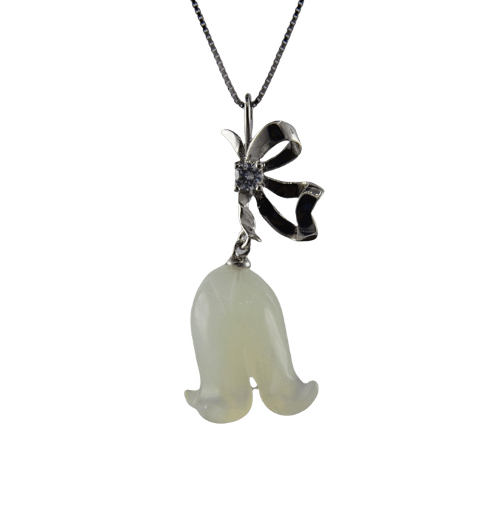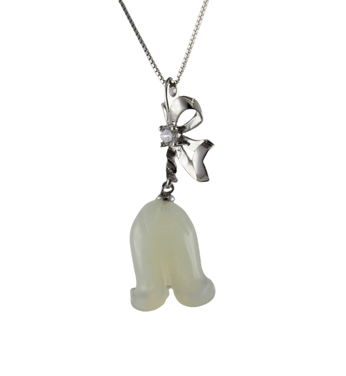 材质:吊坠托为925银;铃兰花为天然的高冰玉料,手工立体雕刻。