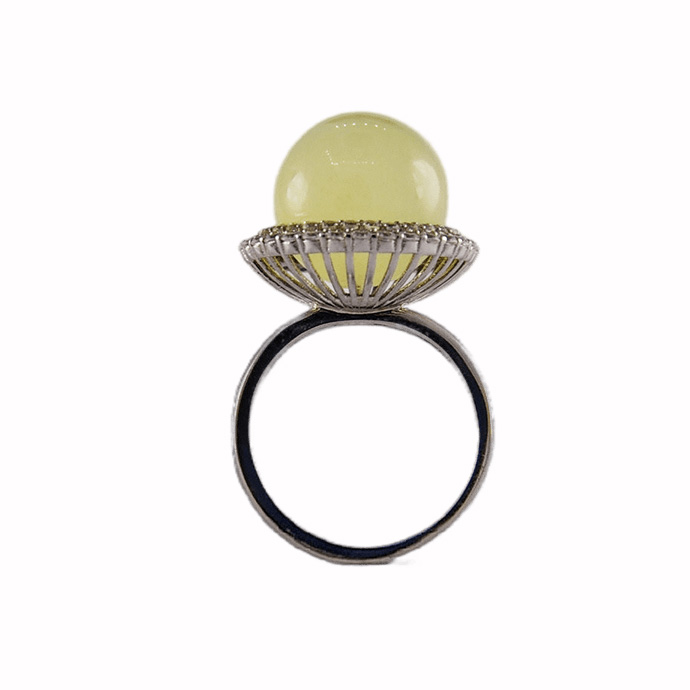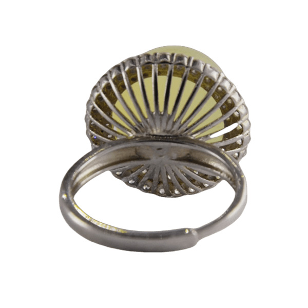 2. 戒指圈采用花瓣圆托,圆周镶嵌满双层小水钻锆石,给人奢侈闪耀的感觉。