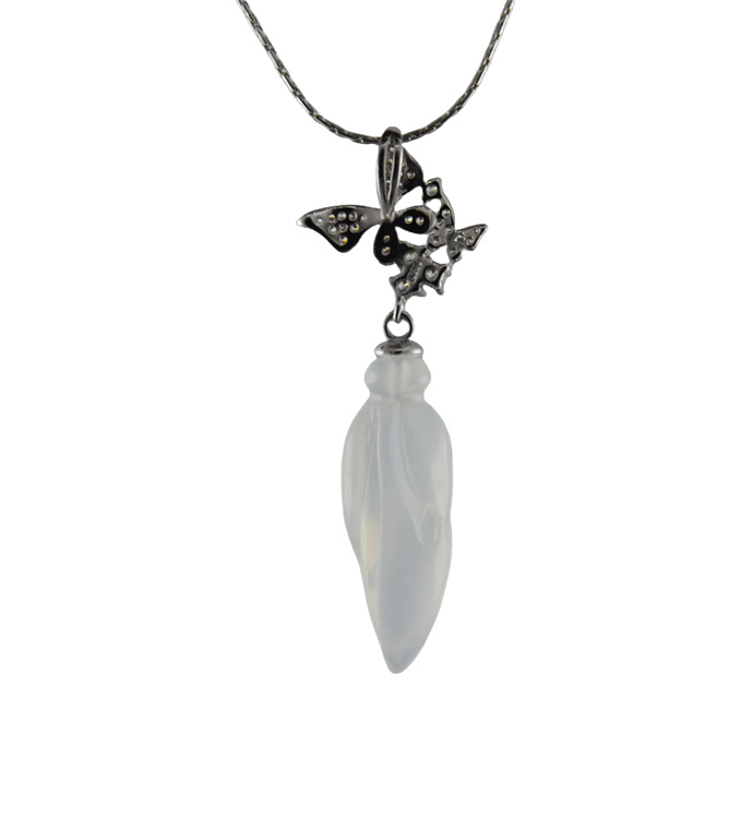 材质:吊坠托为925银;大玉兰花为天然的高冰玉料,手工立体雕刻。