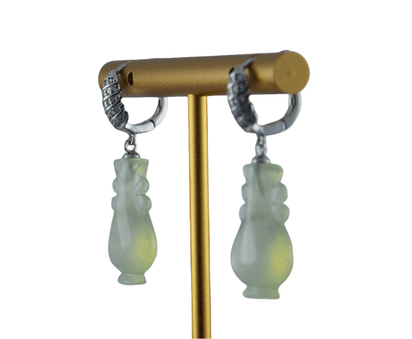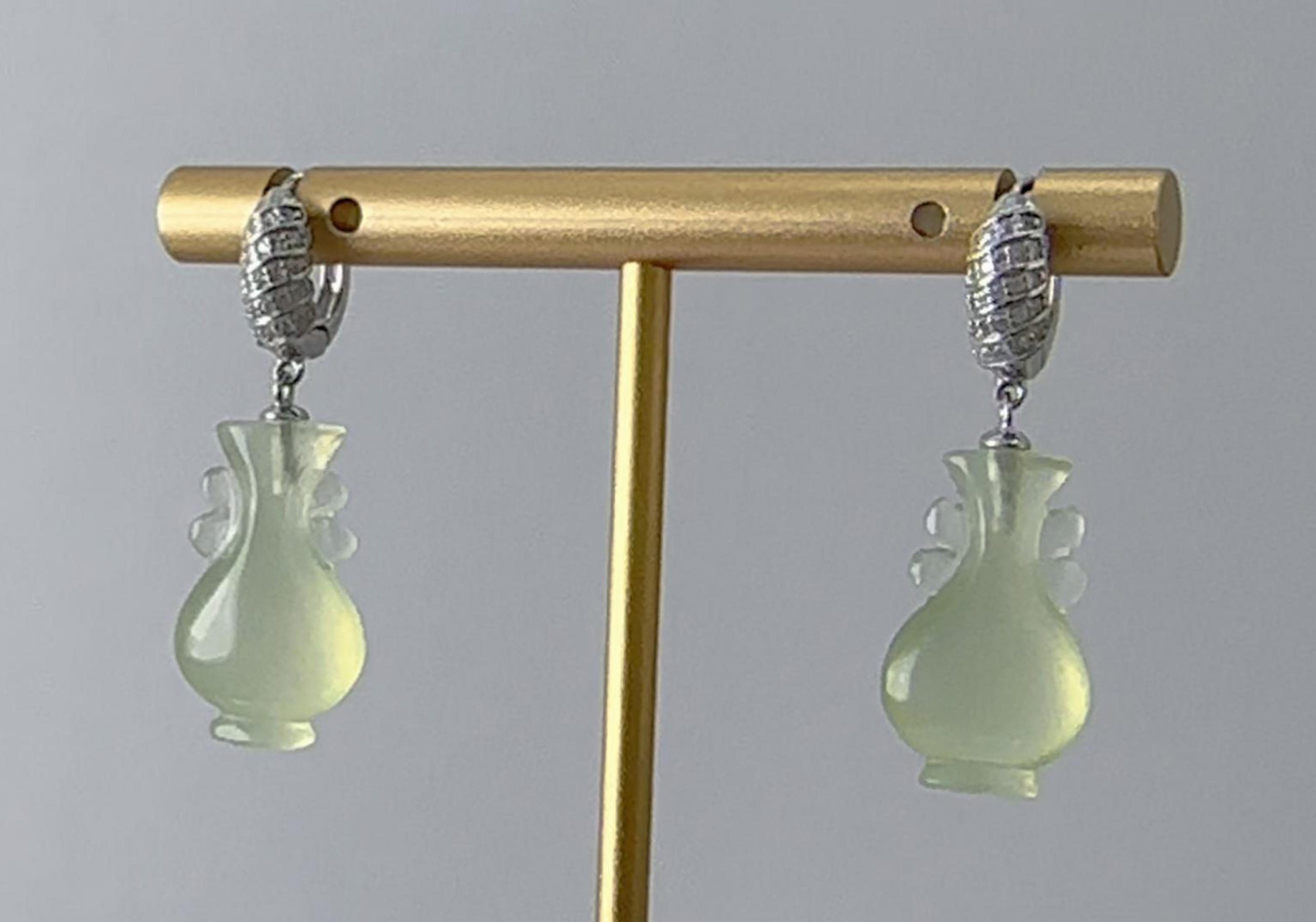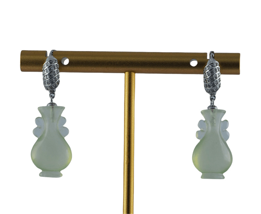 盾,是守护的象征;水波,是柔韧与包容的化身。在这份璀璨守护之下,悬垂着一枚天然玉石手工雕琢而成的如意瓶。玉石触感温凉,与上方银盾的闪亮光华形成质感上美妙对话。这不仅是一件饰品,它是耳畔的一首水光诗,是颈侧的一枚平安符。让流转的银波与玉石守护你的日常,让温润的玉石贴近你的心跳,时刻提醒:优雅之上,自有光芒;从容之中,平安相随。
