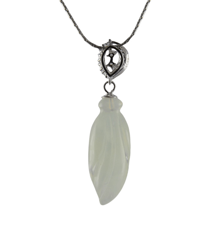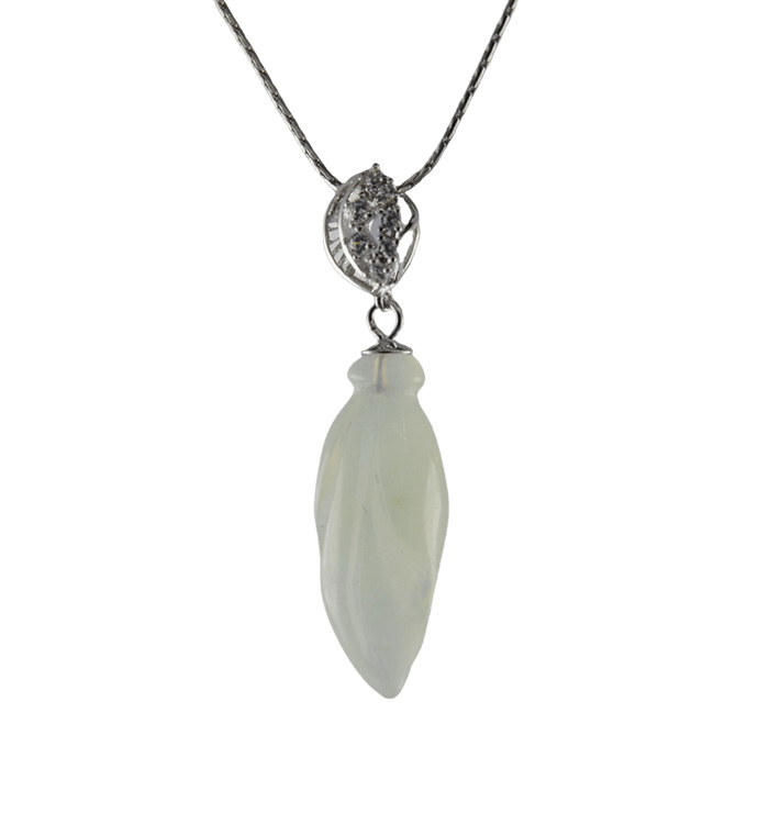 材质:吊坠托为925银;大玉兰花为天然的高冰玉料,手工立体雕刻。