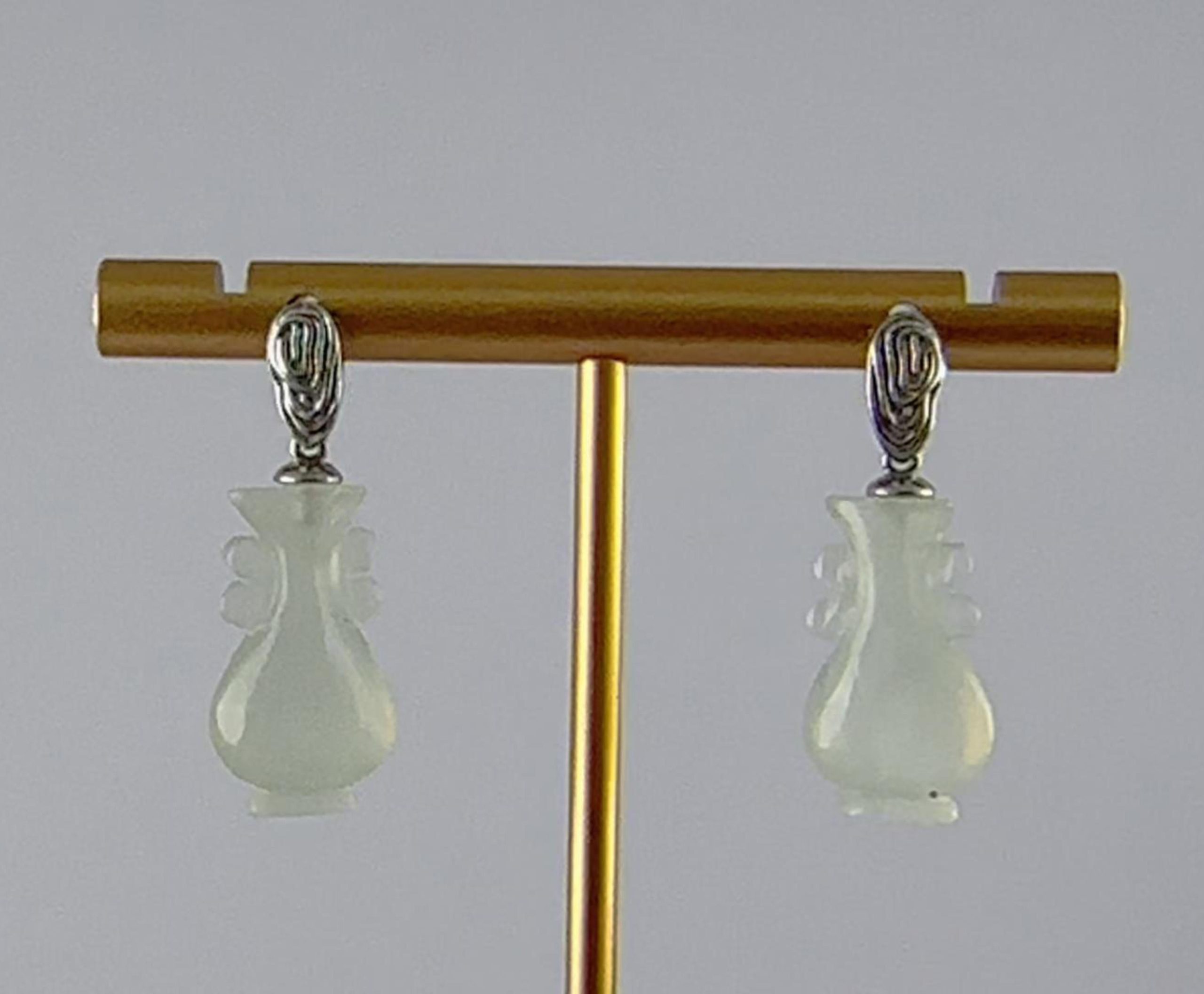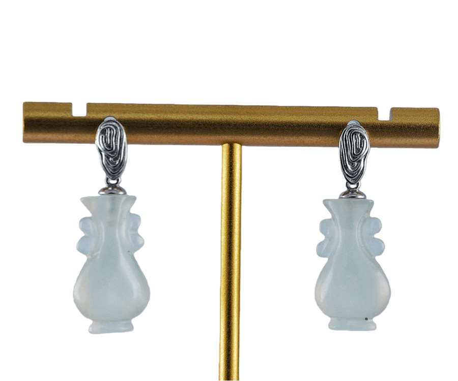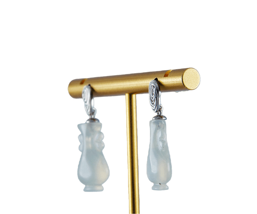耳钉选用S925亲肤银材,匠人纯手工纂刻出立体的指纹造型。每一处凹凸与纹路转折皆精心雕琢,将指纹的私密性与唯一性凝固于金属之上,既是对个性的彰显,亦是对特定情感记忆的永恒封存。下方坠饰选用天然玉石,经由手工精雕成如意瓶形态。瓶身弧度饱满,瓶口细节精致,既保留了玉石天然灵韵,又赋予其“平安如意”的传统祝福。佩戴这对耳钉,是将生命中最独特的印记与最美好的祈愿随身携带。它提醒着你:你是独一无二的存在,值得世间万般如意。