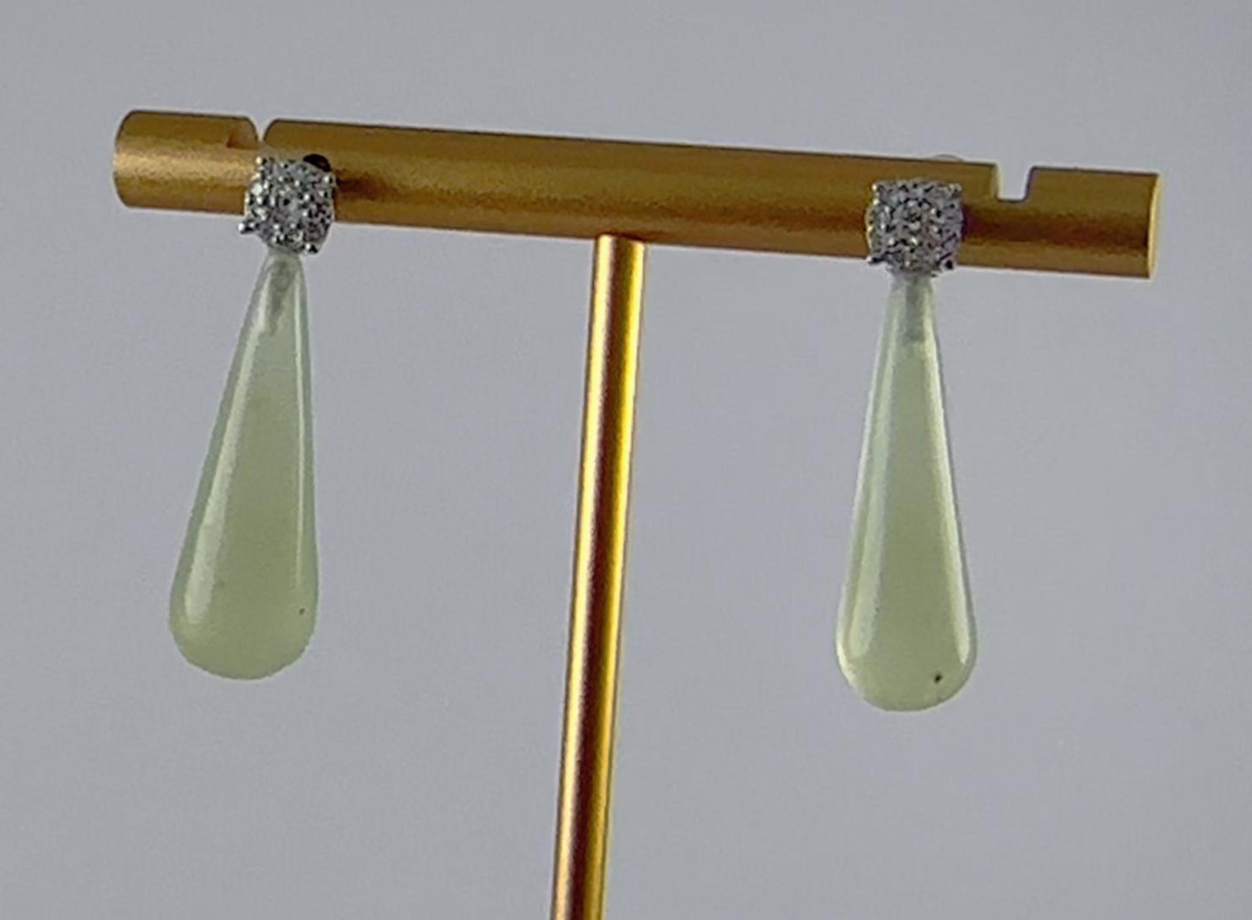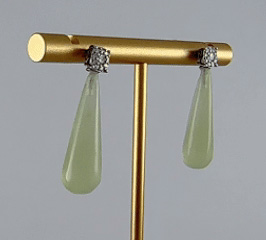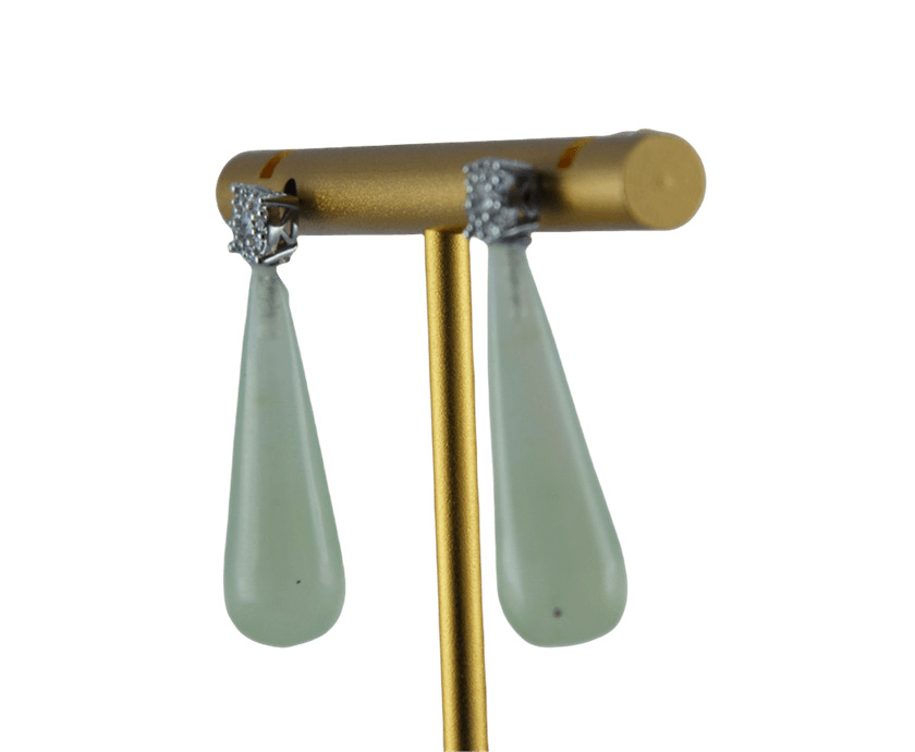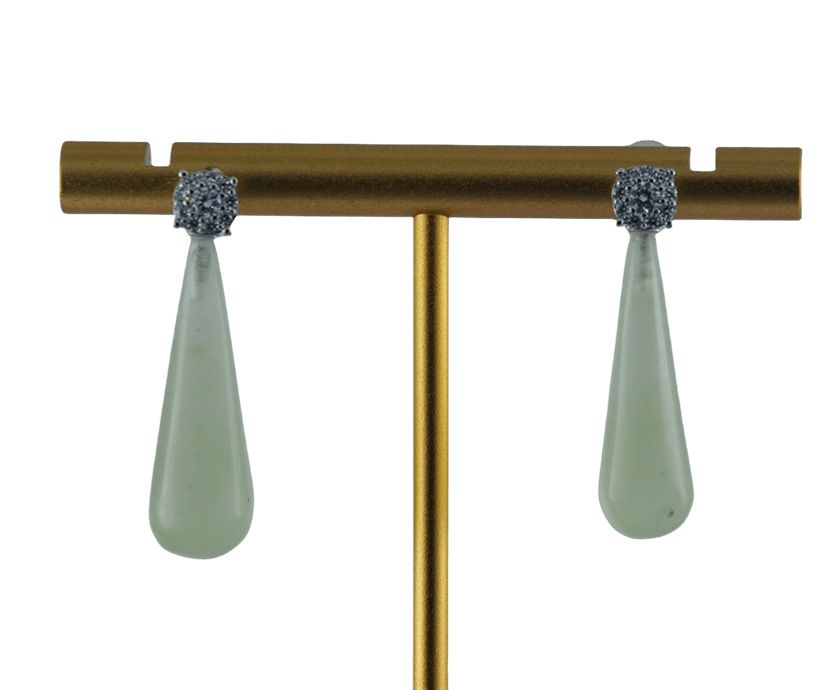 1. 耳钉采用925纯银打造,亲肤不过敏。在连接处,密镶满一个方形的水钻锆石,闪烁着细碎光芒,衬托得脸部线条更为柔和。下方的锥形水滴挂坠为天然玉石,全程由经验丰富的匠人手工雕琢。每一刀的深浅、每一处的弧度都凝聚着匠人的心血,展现了极高的雕刻技艺 。既能在发丝间若隐若现地展现玉石的温润与雕刻细节,又不会过于夸张。