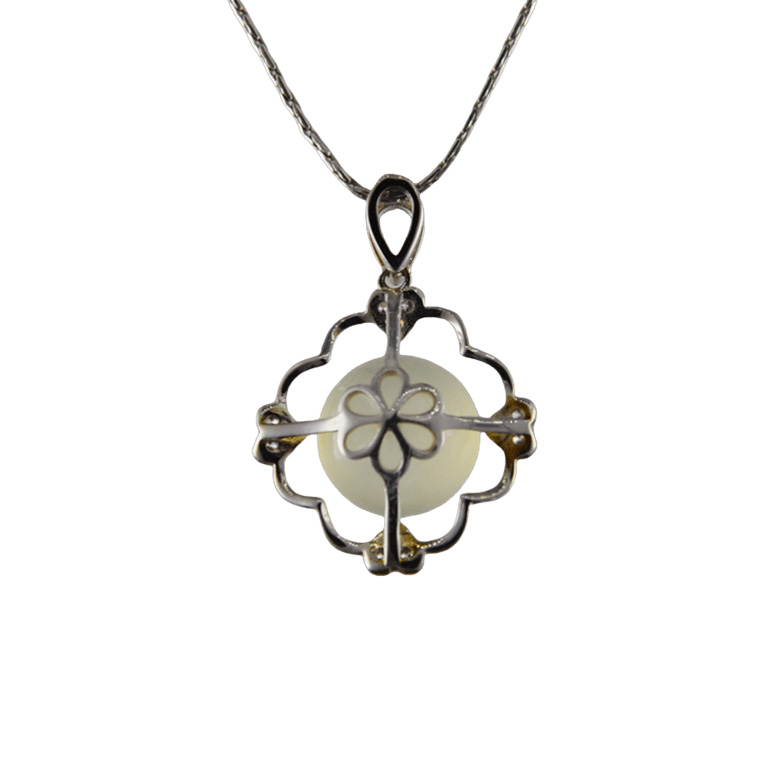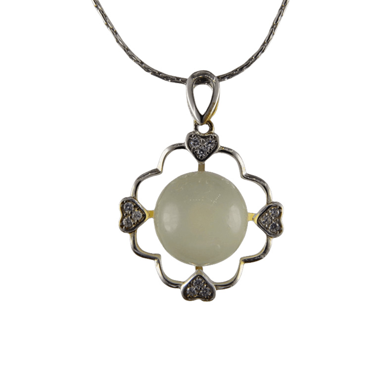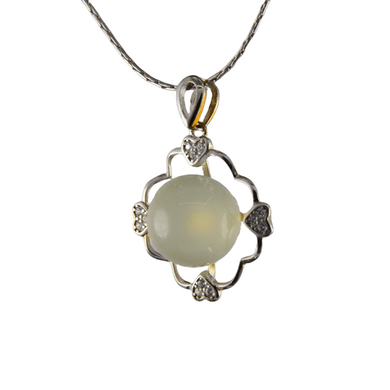 材质:吊坠托为925银;小珠子为天然的白冰玉料。