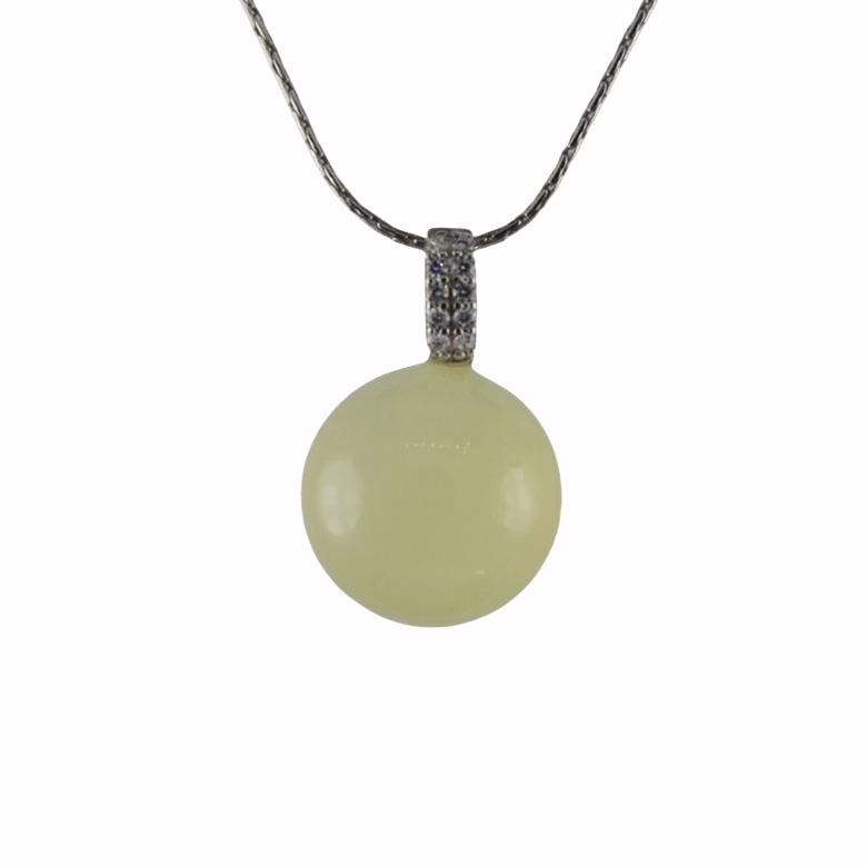 2. 银色满钻O形吊扣下连接大珠子,吊扣上镶嵌满小水钻,浑然一体,整体简洁明亮。