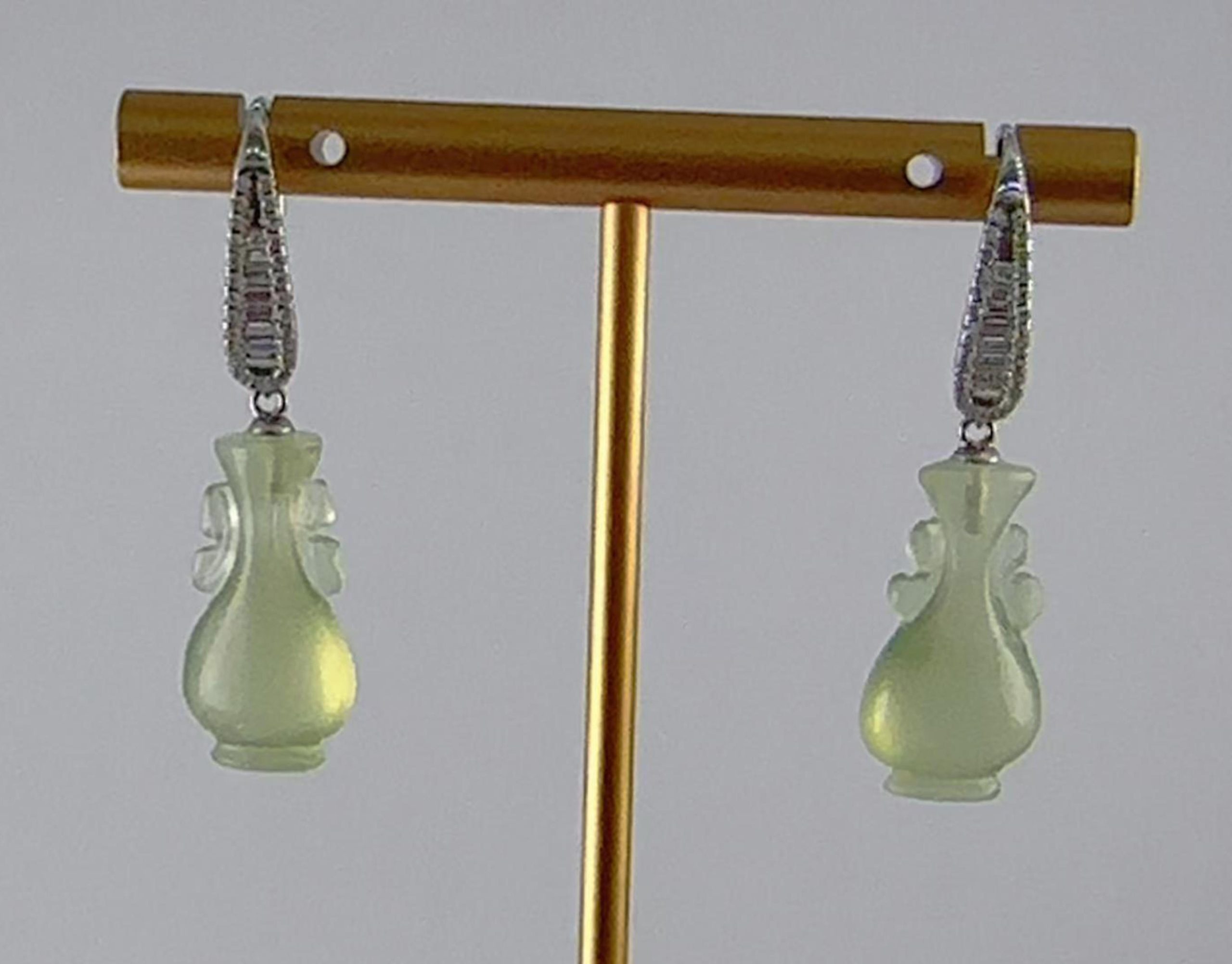 耳钩的主体是以925银勾勒出如水滴般流畅饱满的形态,再将甄选水钻锆石紧密镶嵌其表面,形成充满现代感与力量感的水滴钻石;下面是温润内敛,承载传统文化与手作温度的玉石如意瓶。一明一暗,一动一静,一西方宝石之光华,一东方美玉之气韵,二者碰撞却奇妙交融,创造出一种既时尚夺目又底蕴深厚的独特美学。