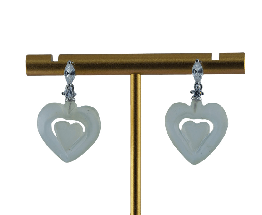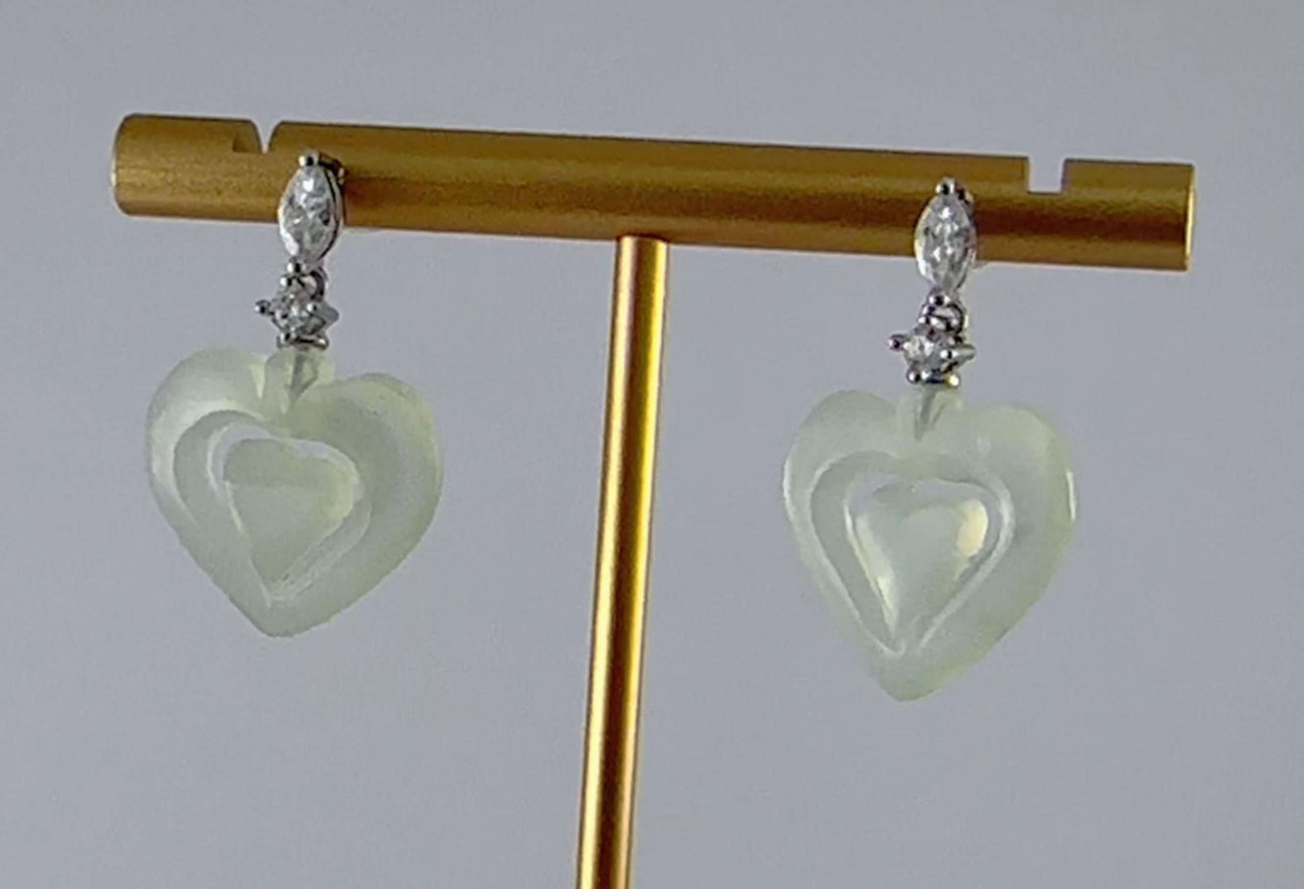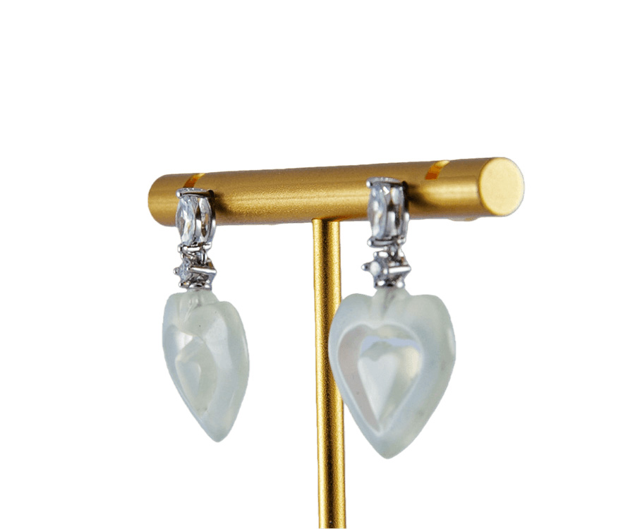 1. 耳钩采用925纯银打造,亲肤不过敏。顶部和连接处各镶嵌一颗高品质大水钻锆石,切割面丰富。下方的桃心挂坠为天然玉石,全程由经验丰富的匠人手工雕琢。每一刀的深浅、每一处的弧度都凝聚着匠人的心血,展现了极高的雕刻技艺 。耳钩整体长度设计恰到好处,既能在发丝间若隐若现地展现玉石的温润与雕刻细节,又不会过于夸张。