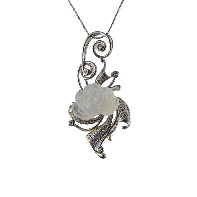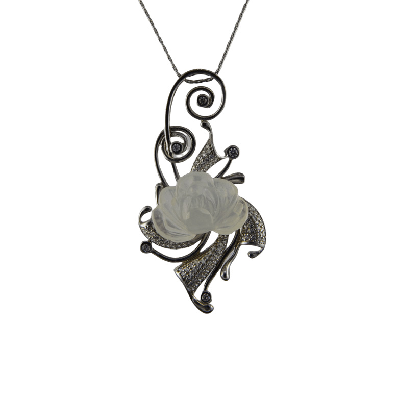 3. 银色牵牛花的喇叭上镶嵌小水钻,配上立体5层小牡丹花,使牵牛花更形象生动。
