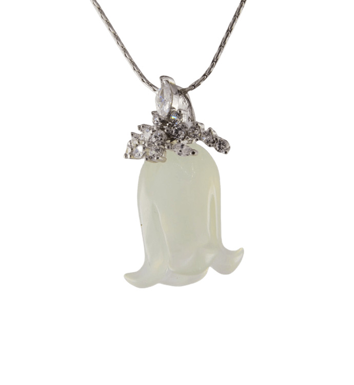 1. 铃兰花为岫岩玉中的高冰料,天然玉石独一无二,玉絮纹理和透明度每个都不完全一样。