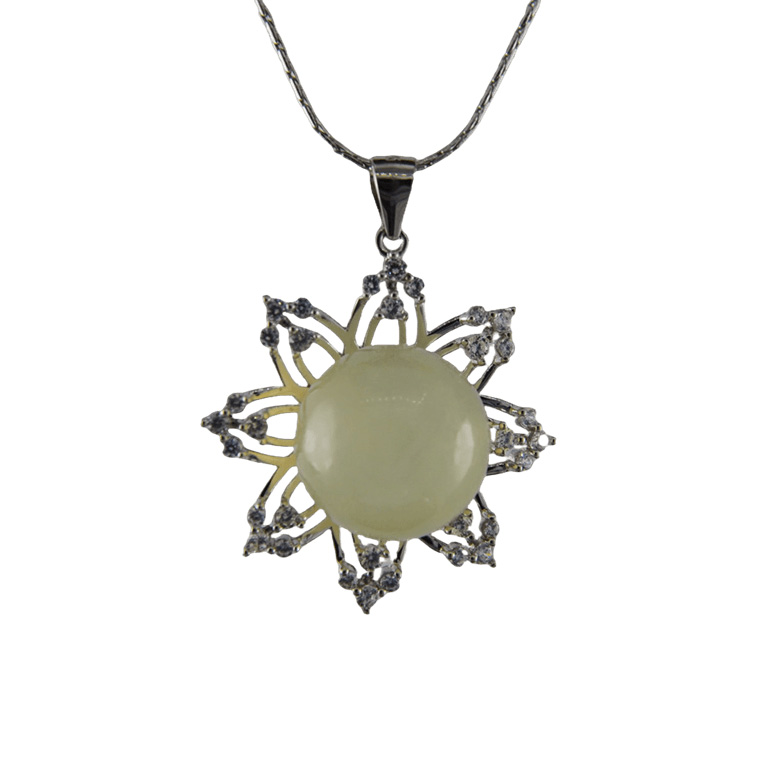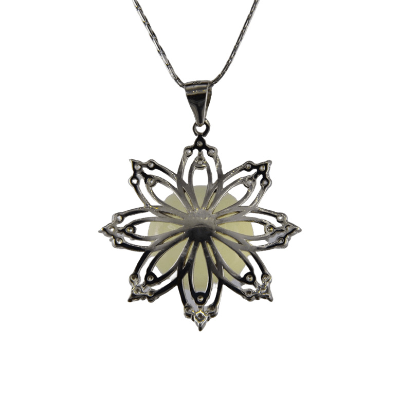 2. 银色花瓣形底托镶嵌小水钻,与大珠子搭配,使大珠子更闪亮。