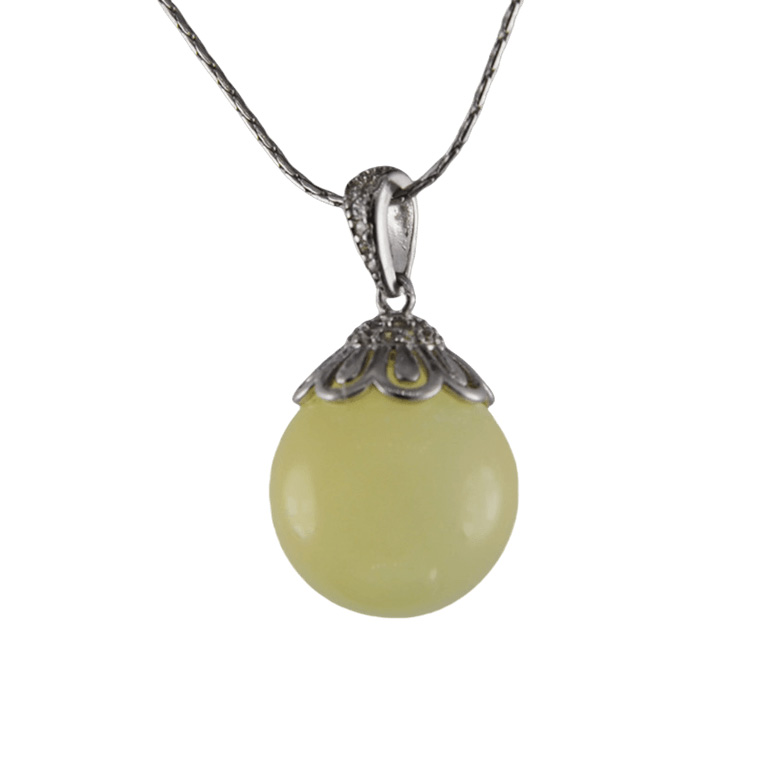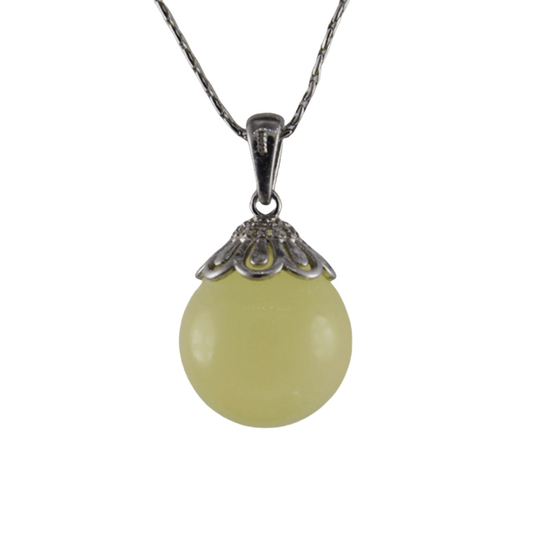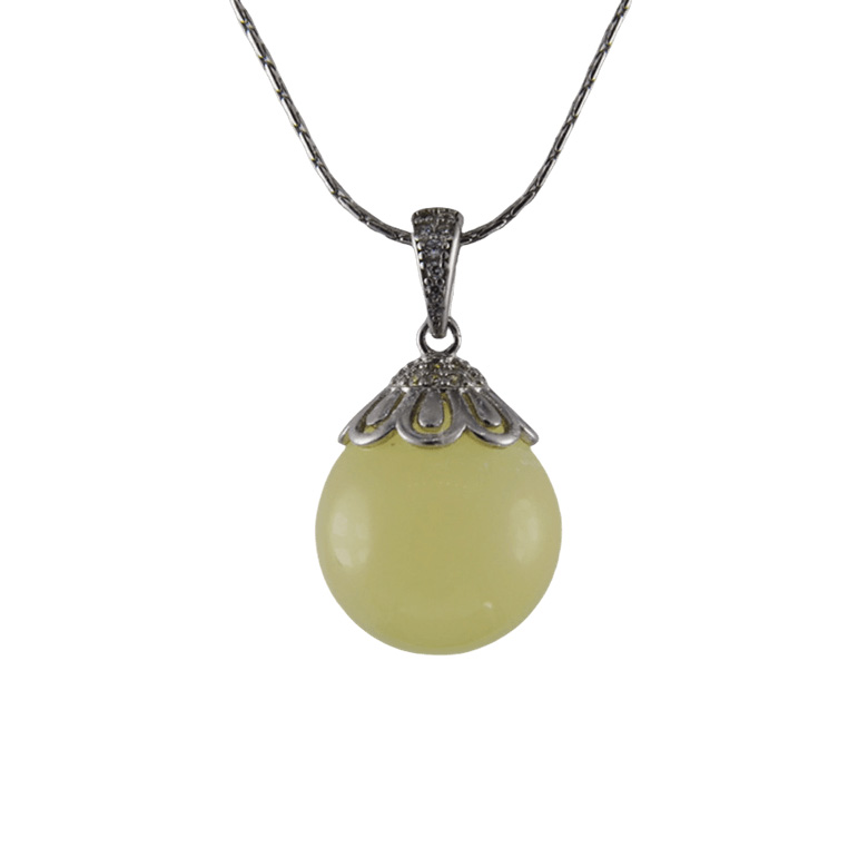 2. 银色花瓣形底座上连接大珠子,镶嵌小水钻,给人古朴精致的感觉。