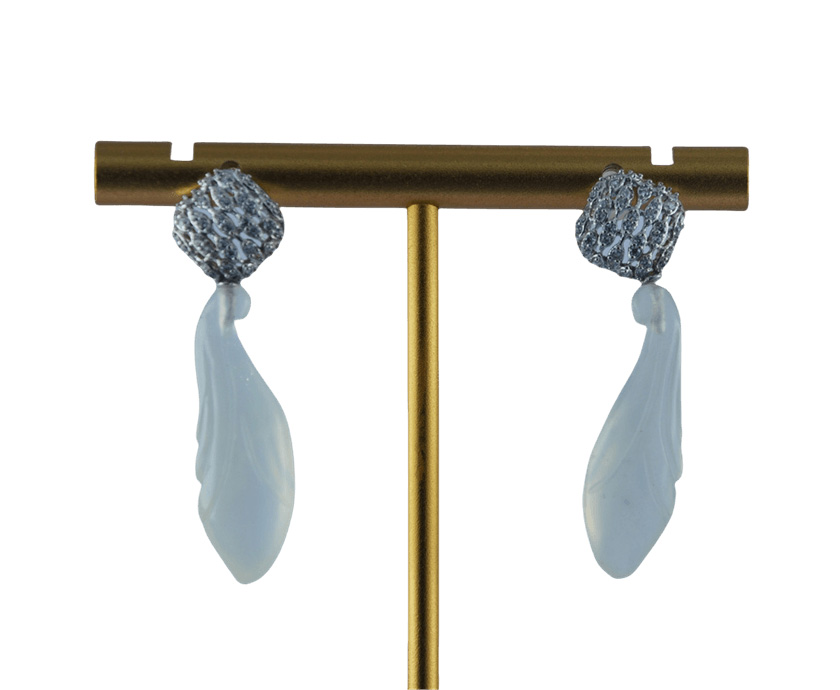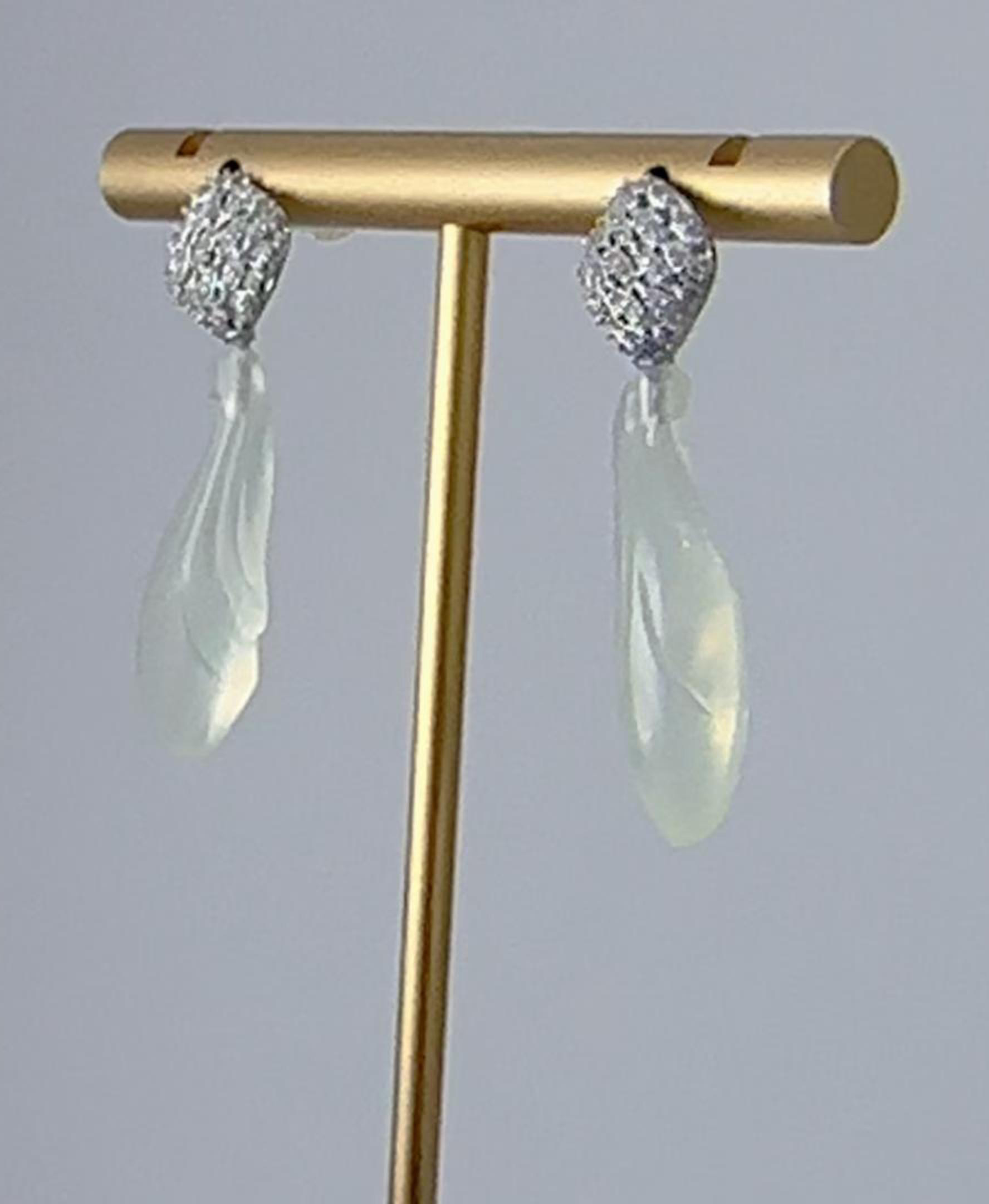 网下轻悬的天然玉兰花,是整件作品的静谧之心。手工雕刻最大限度地保留了玉石的天然纹理与温润气质,其形态圆融欲滴,色泽清雅恬淡,仿佛在喧嚣闪耀之上,始终保有一份沉静的呼吸与自然的温度。