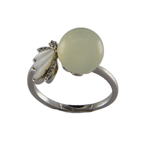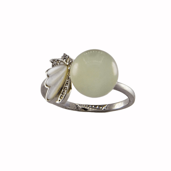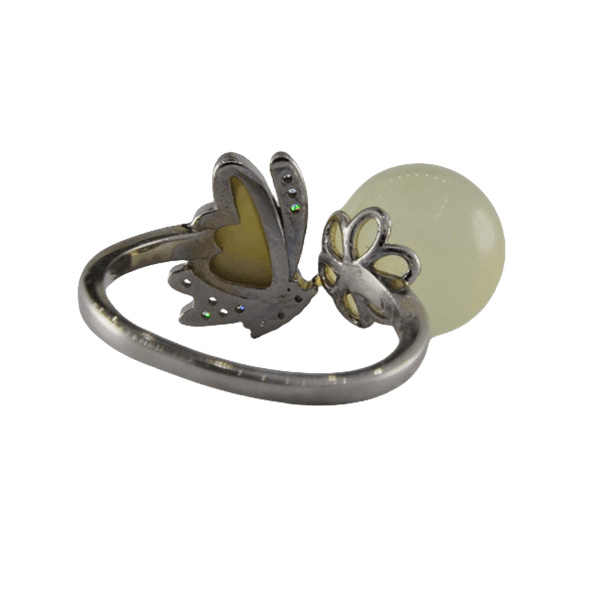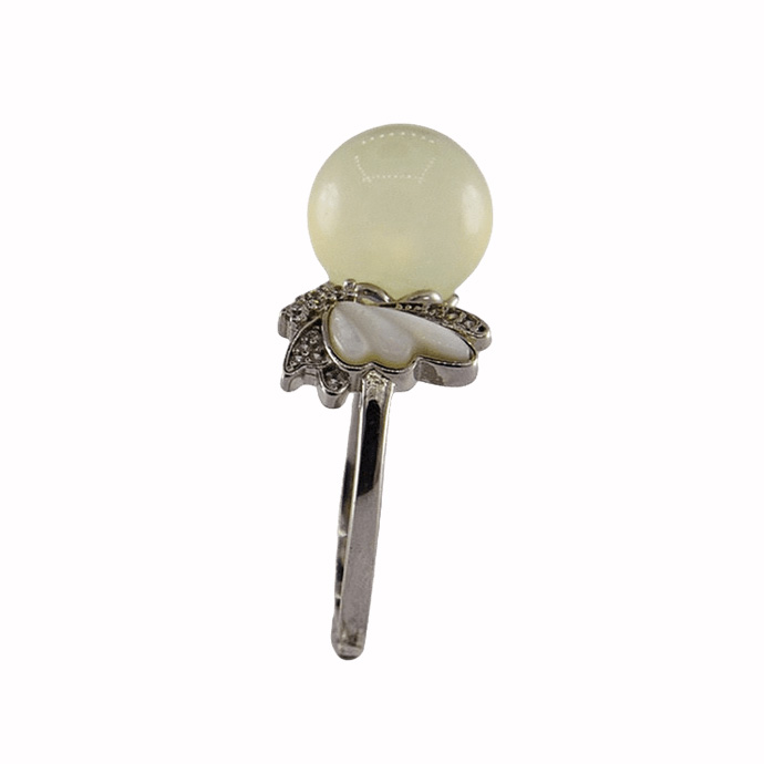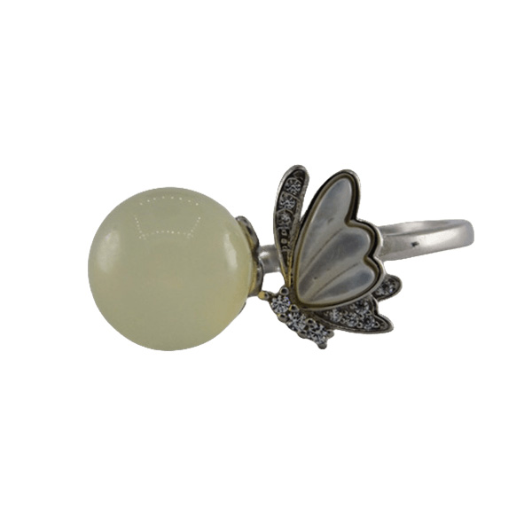 2. 戒指圈的珠子旁边有一个贝壳材质的蝴蝶造型,给人轻奢清爽的感觉。